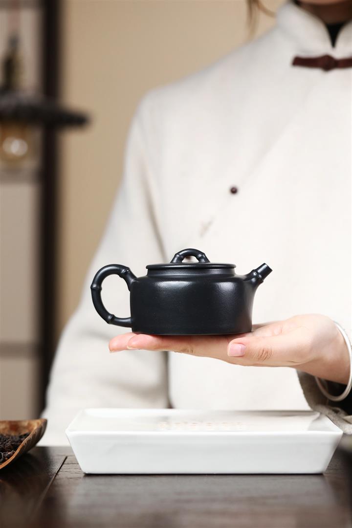 原礦烏青泥純全手竹節平蓋茶壺POT6932