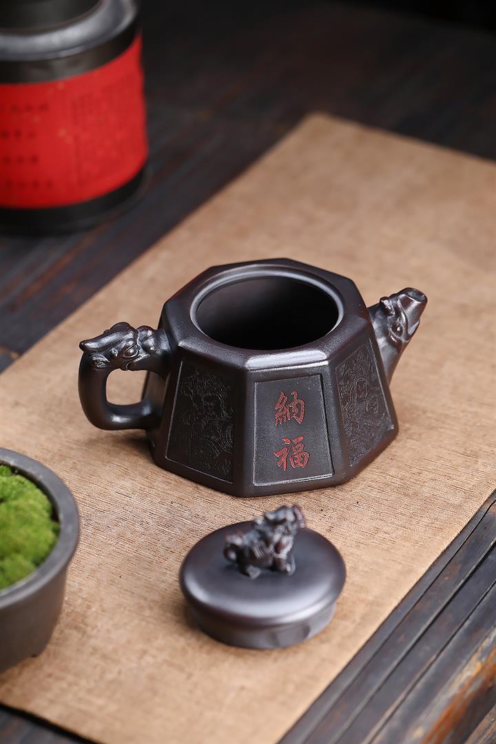 原礦古紅泥純手工八方招財納福茶壺POT6937