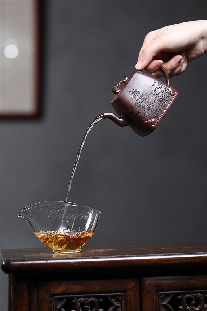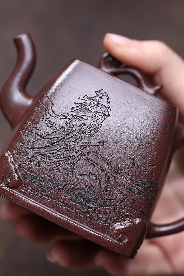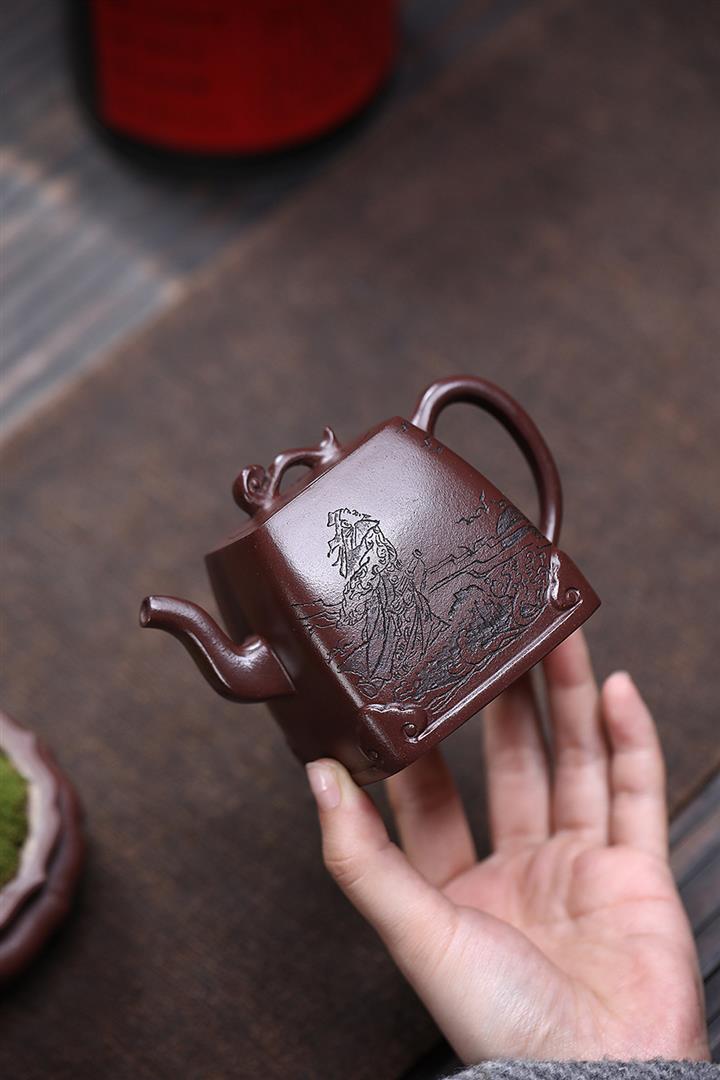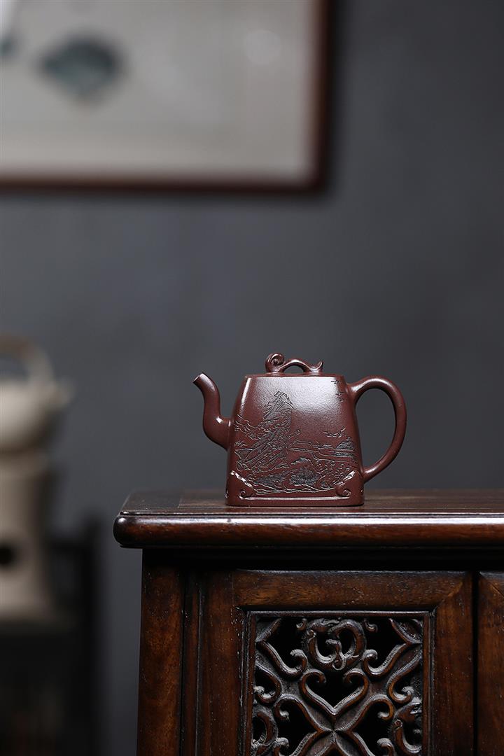 原礦紫泥刻山景雙線雲華茶壺POT6945