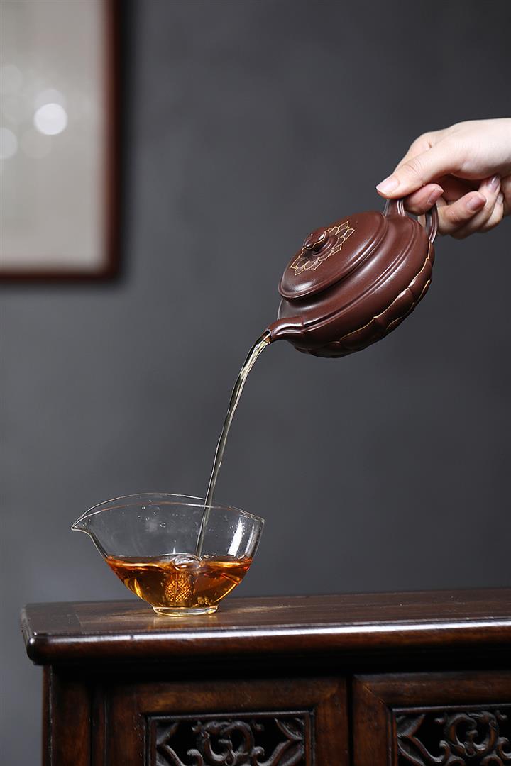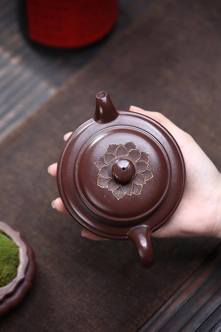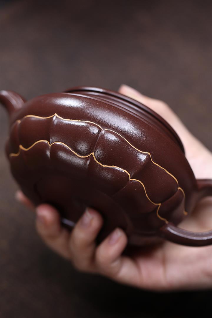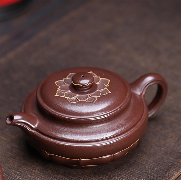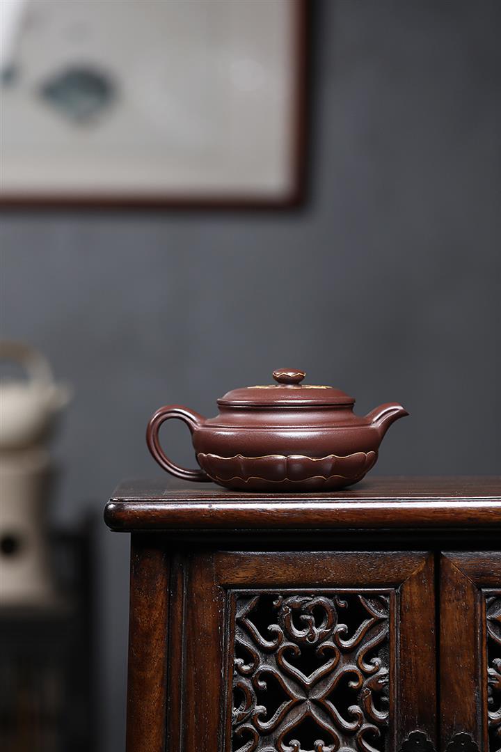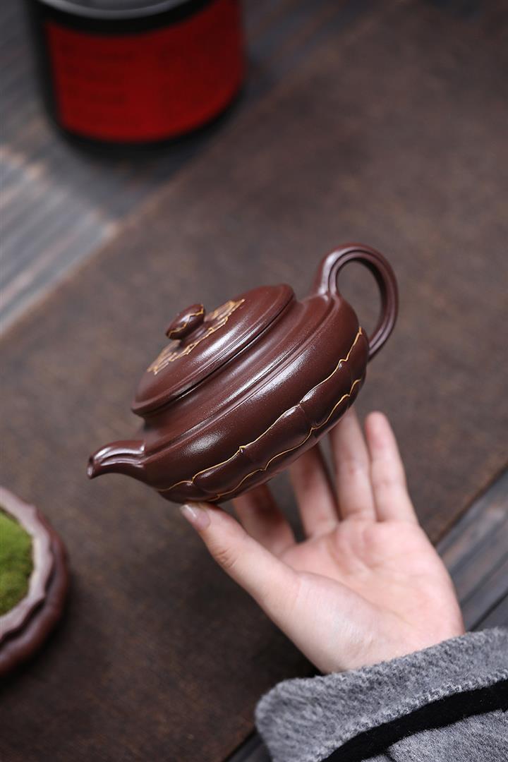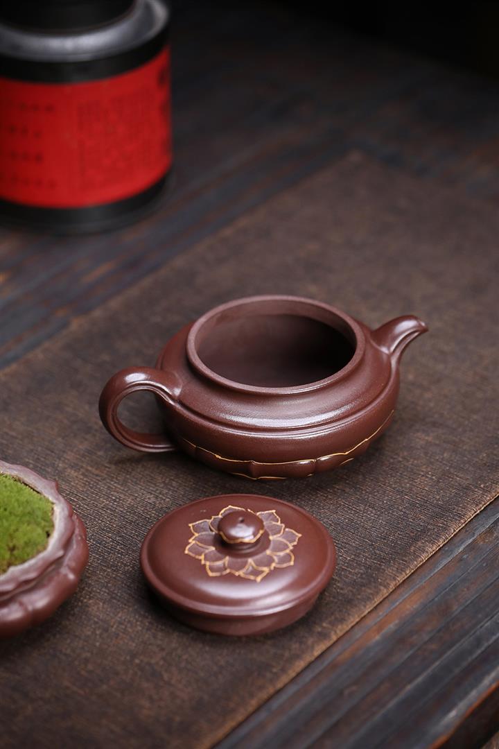 原礦紫泥描金梵蓮仿古茶壺POT6943