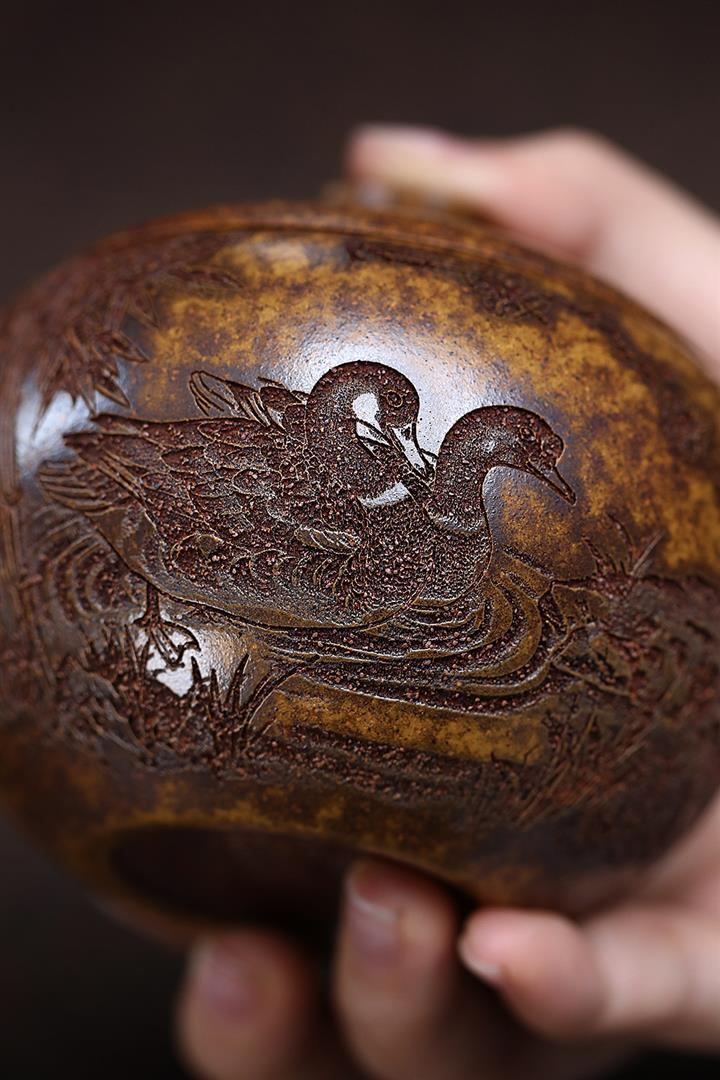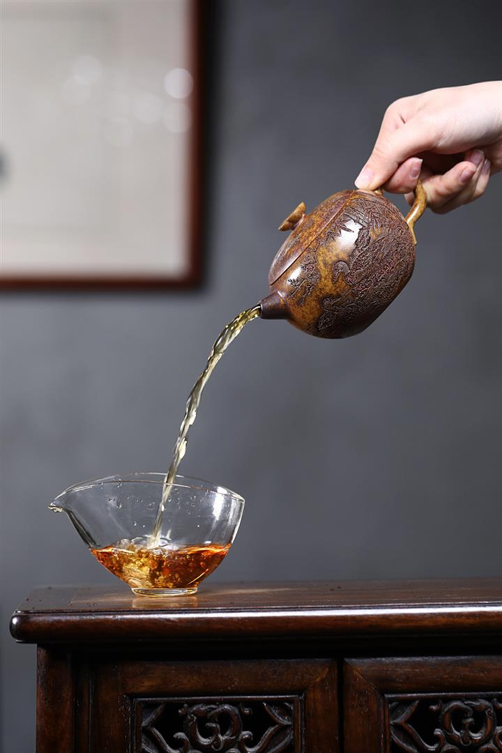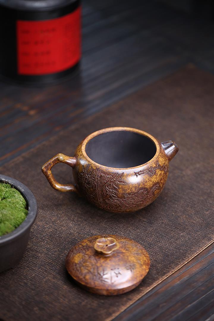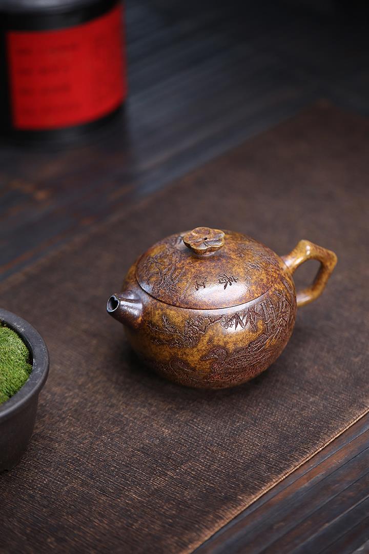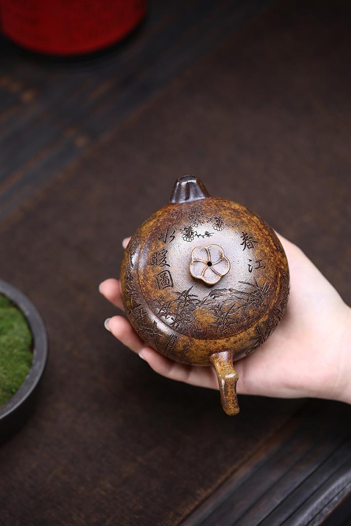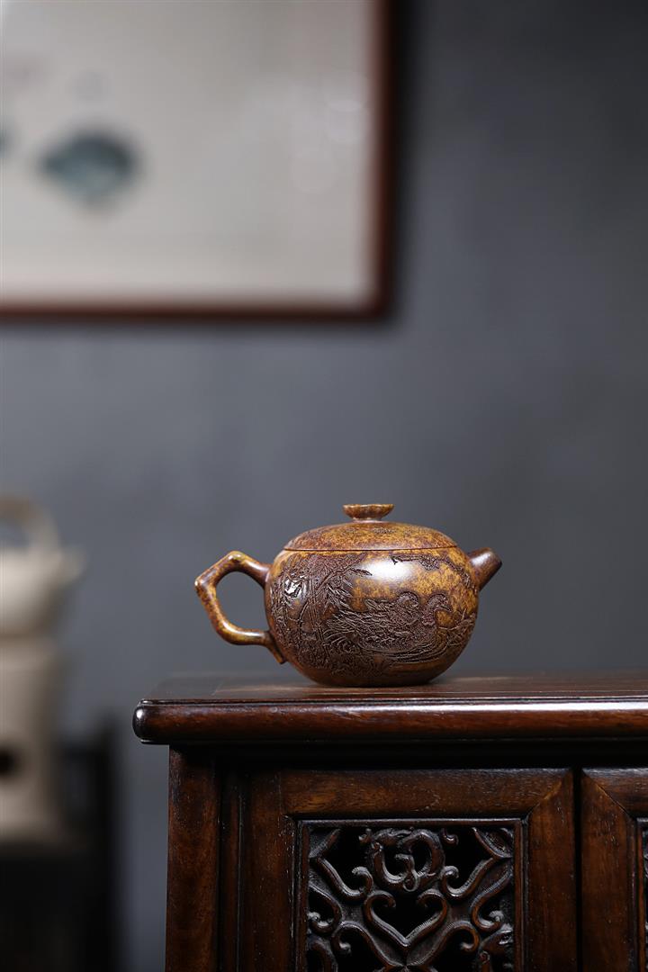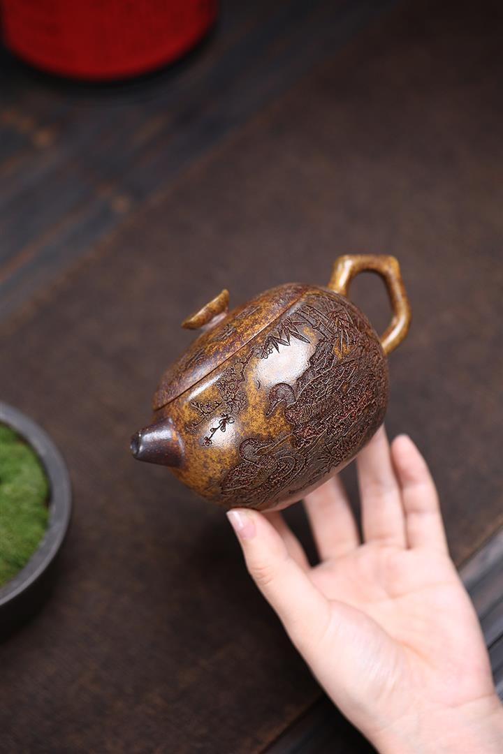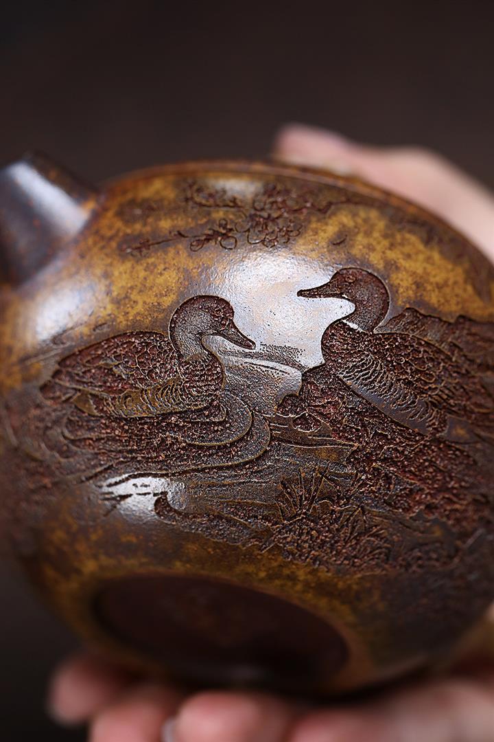 原礦黑泥刻繪鴻運當頭茶壺POT6954