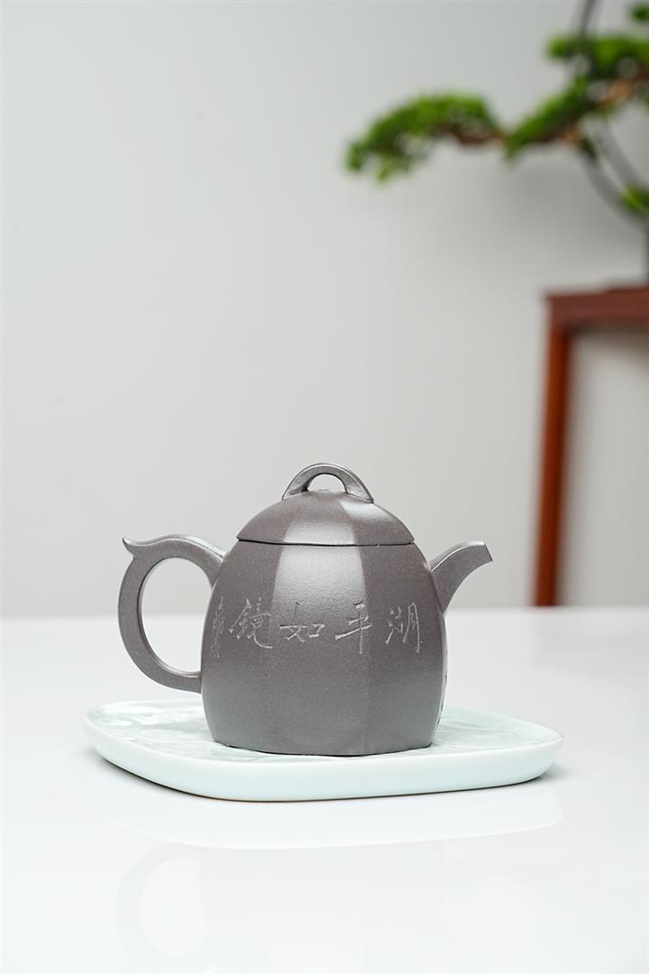 原礦天青泥手工厚德載物四方茶壺POT6960
