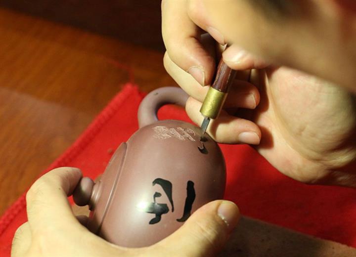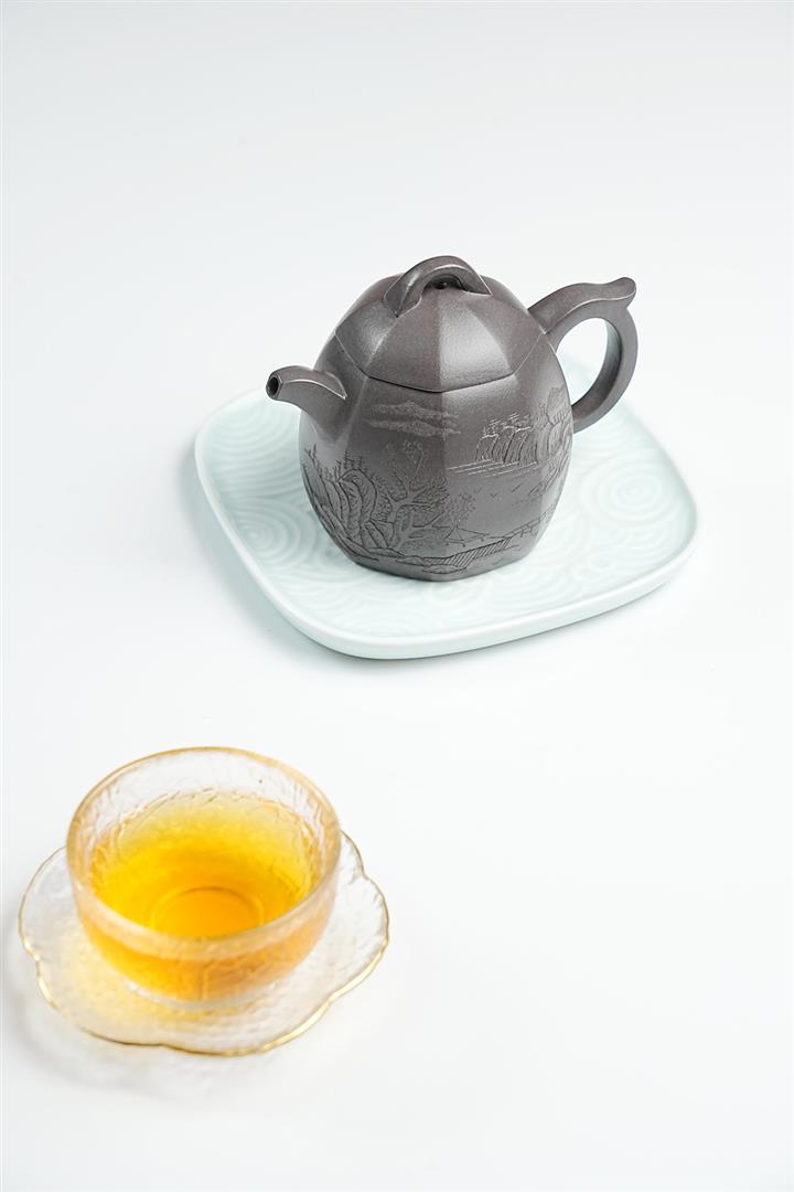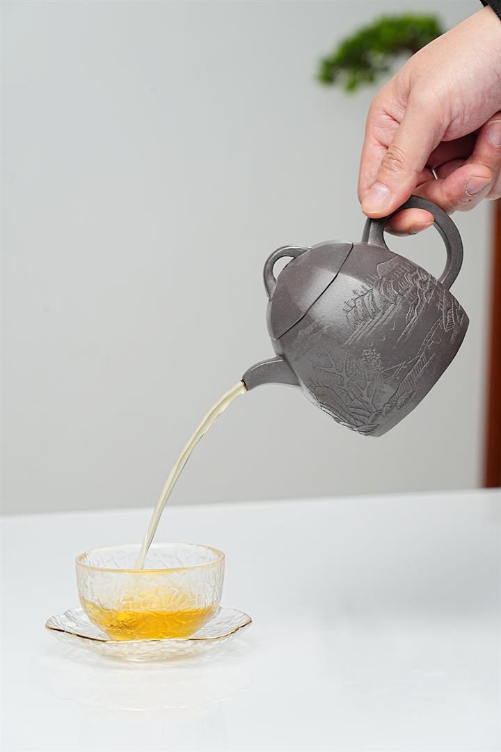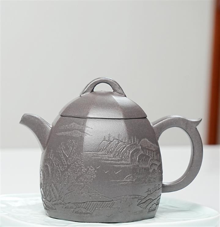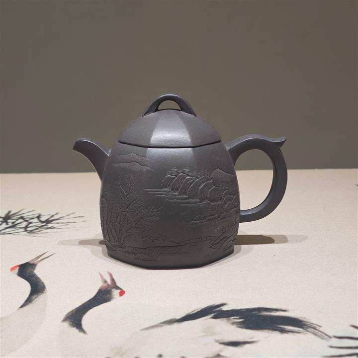 原礦革紫泥手工刻繪過橋容天茶壺POT6964
