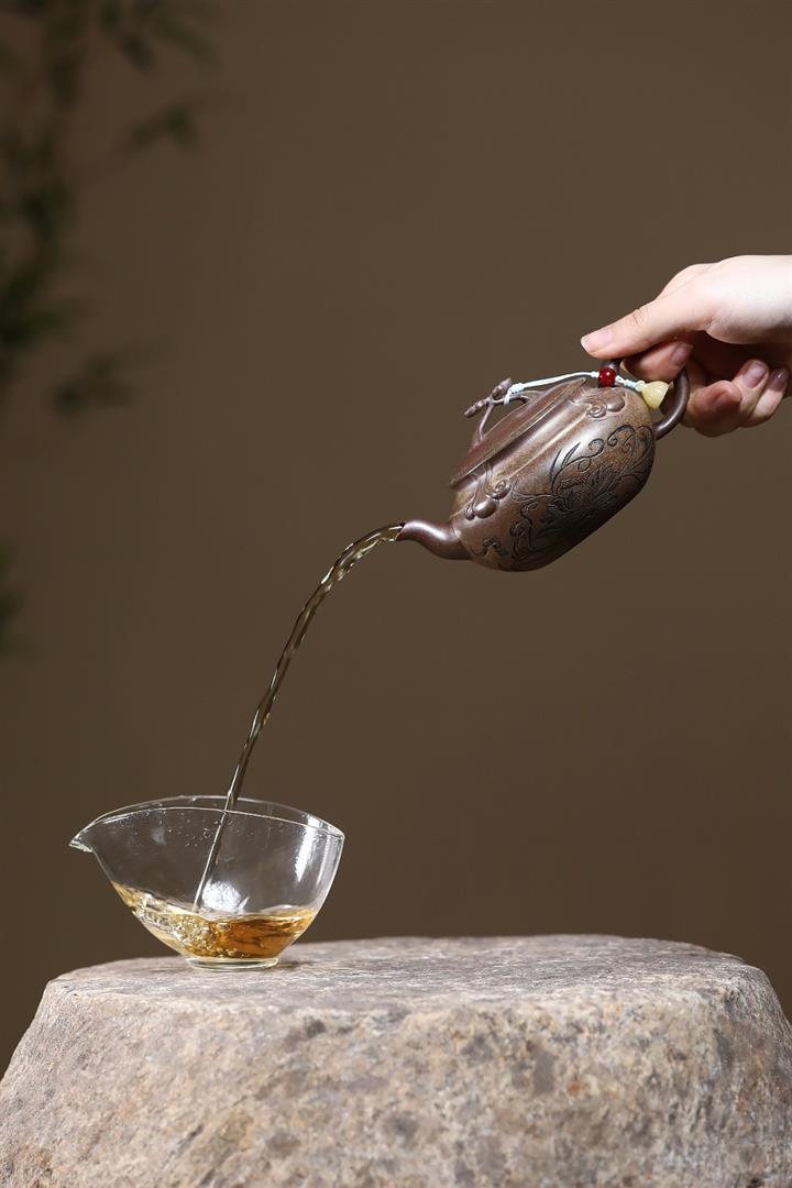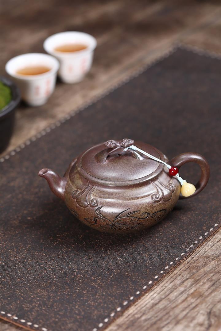 原礦老紫泥刻繪鳳凰雲爐茶壺POT6975