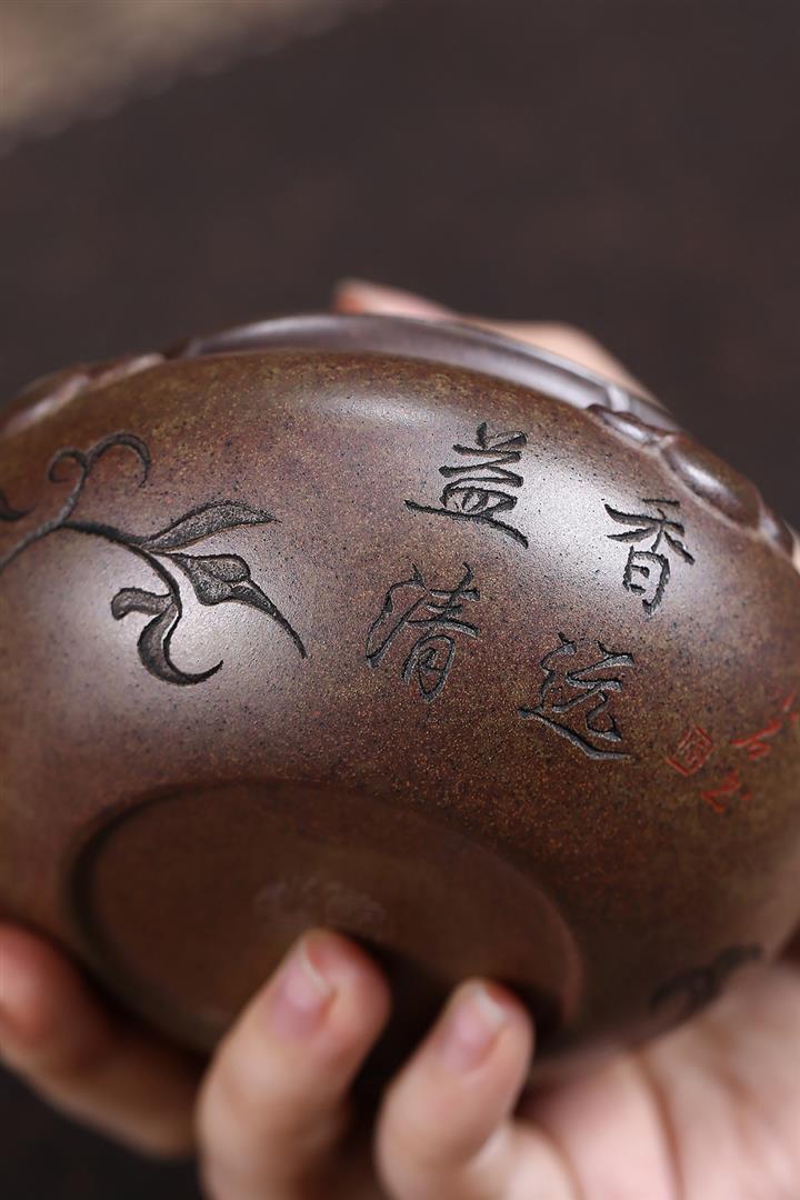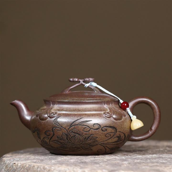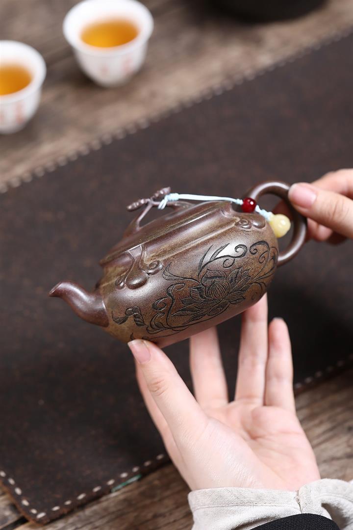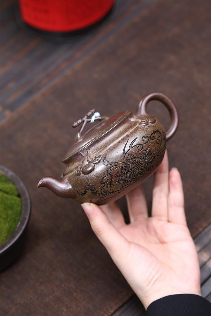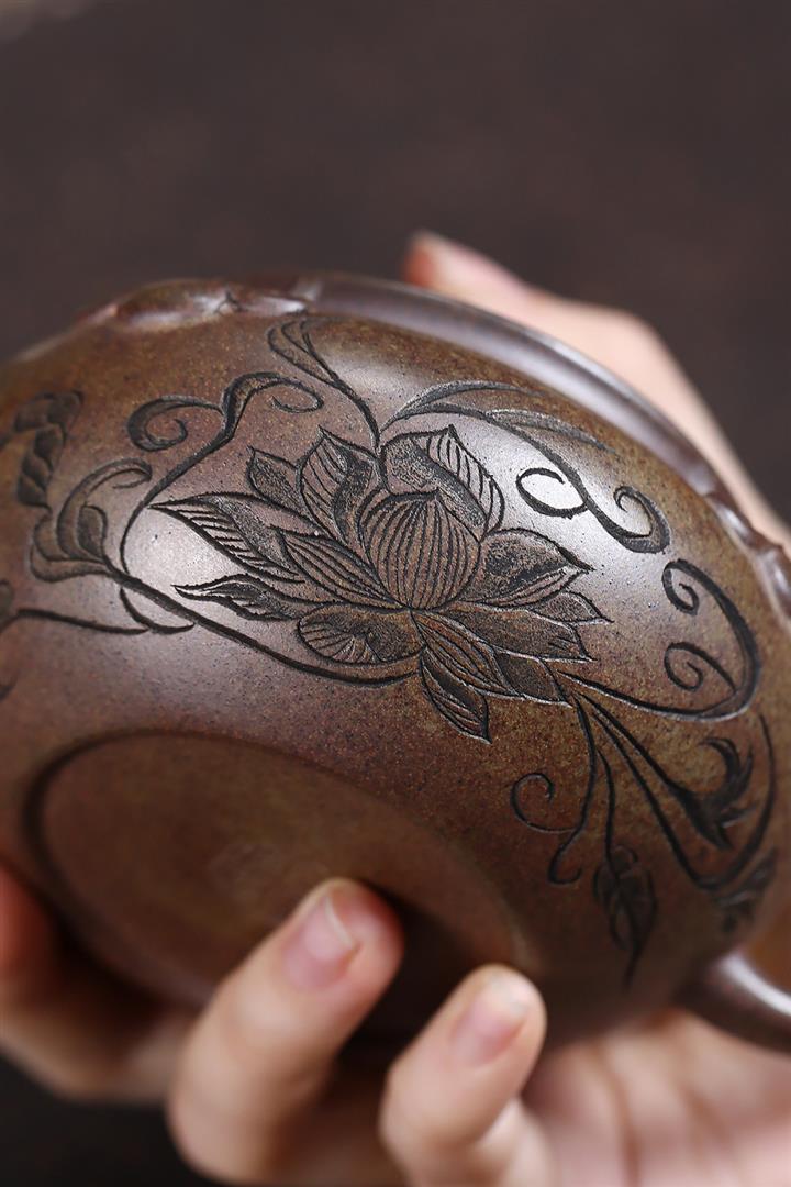 原礦陳腐老紫泥刻繪描金佛蓮茶壺POT6976