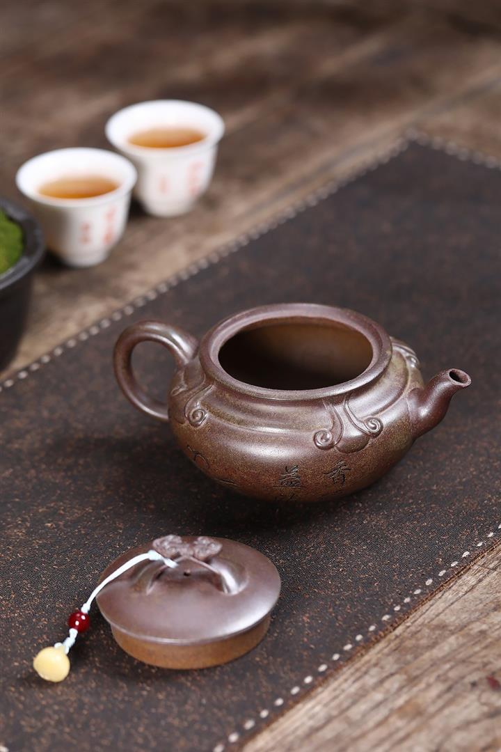 原礦柴燒沈香泥滿刻蛋包提梁茶壺POT6979