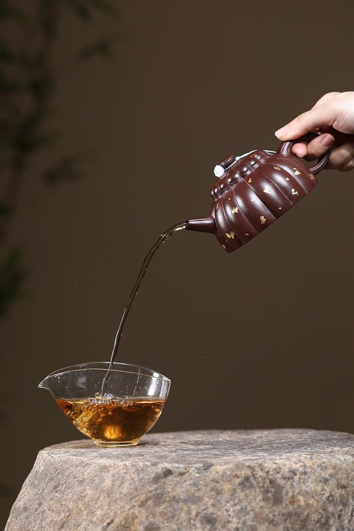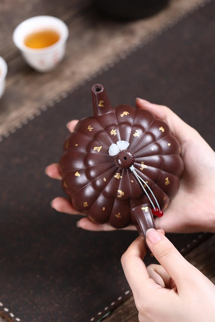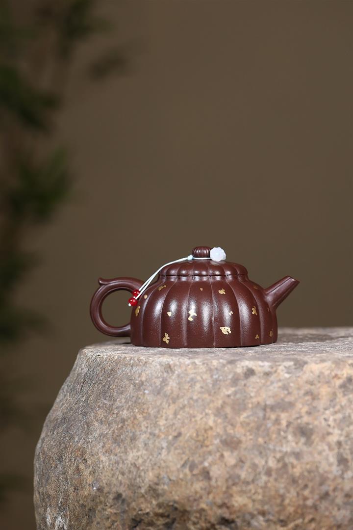 原礦老紫泥灑金筋紋菊蕾茶壺POT6974