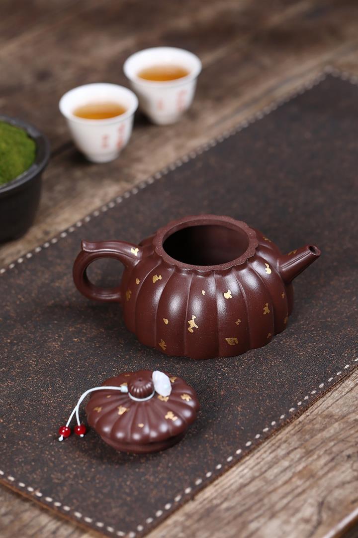 原礦陳腐老紫泥刻繪描金佛蓮茶壺POT6976