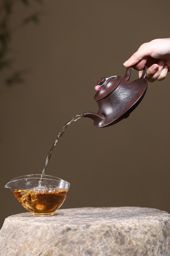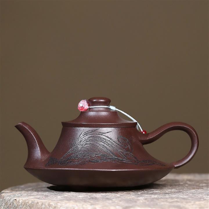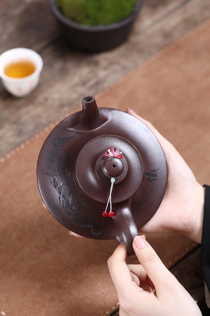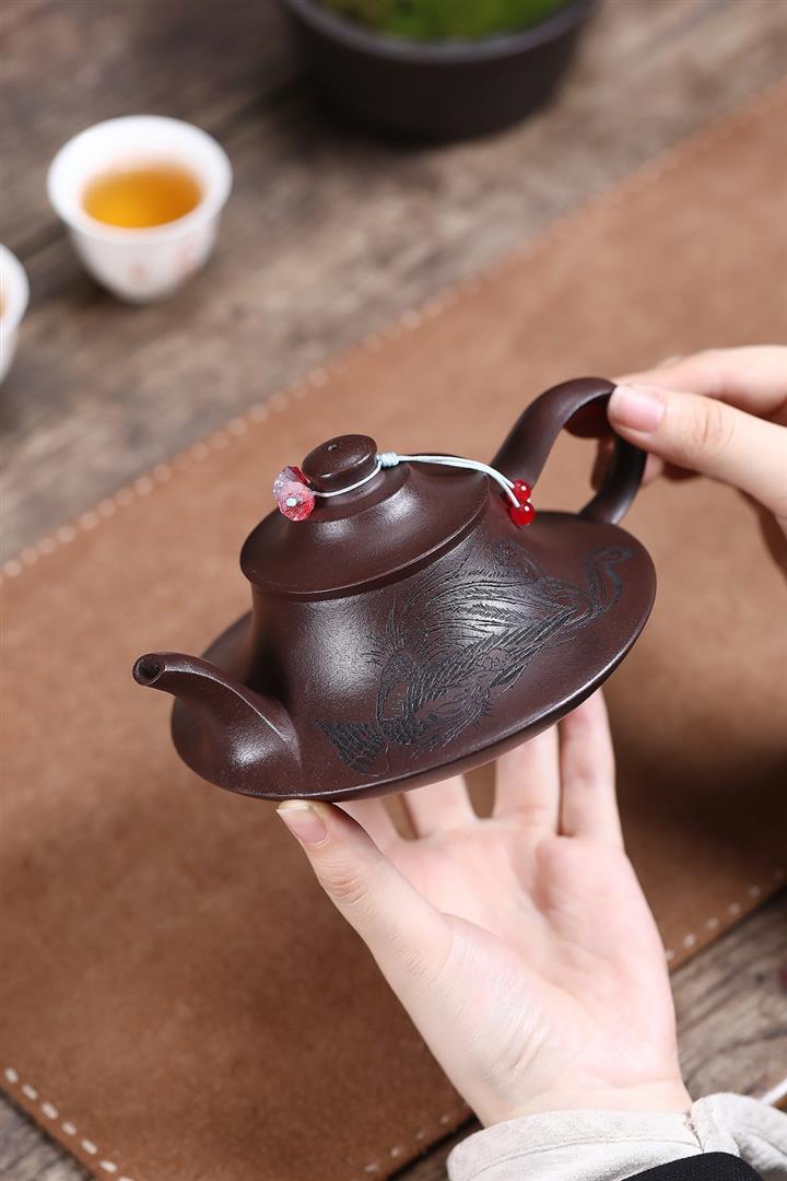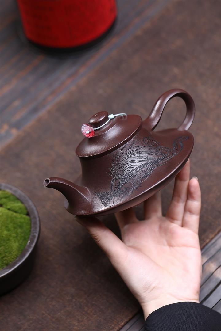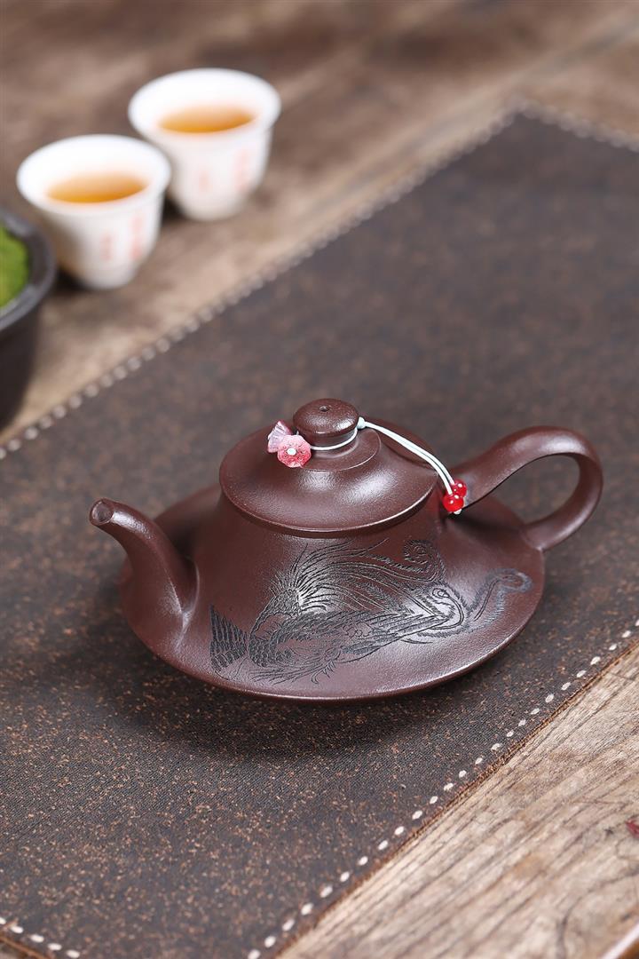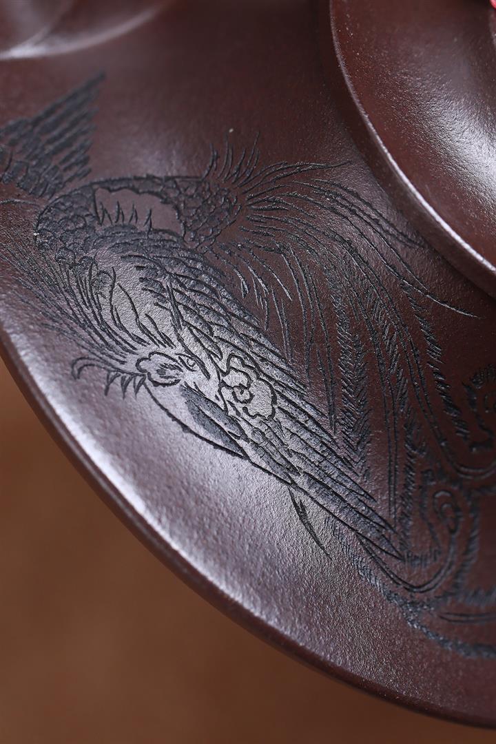 原礦老紫泥刻繪鳳凰雲爐茶壺POT6975