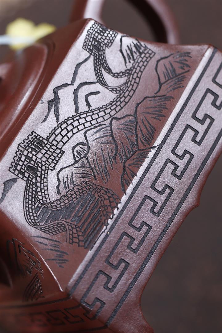 原礦石黃刻繪觀山汲直茶壺POT6981