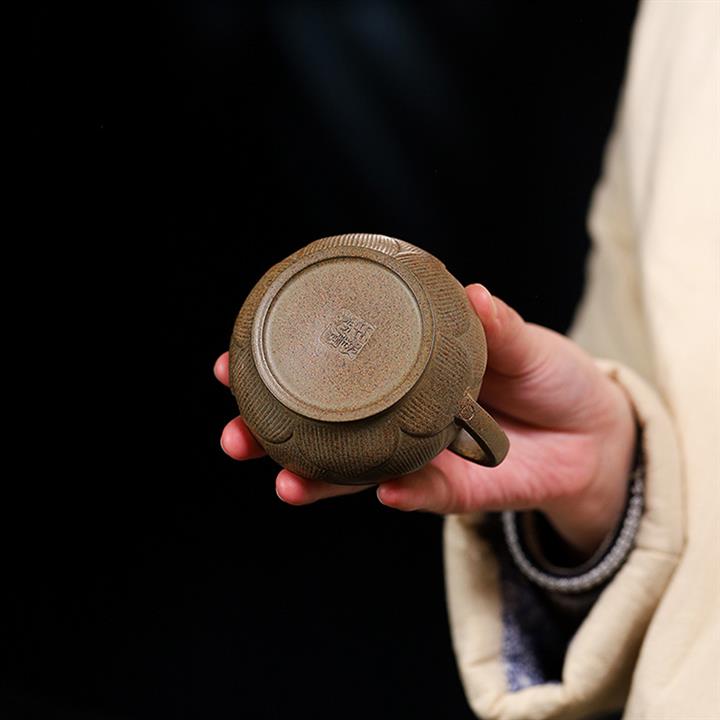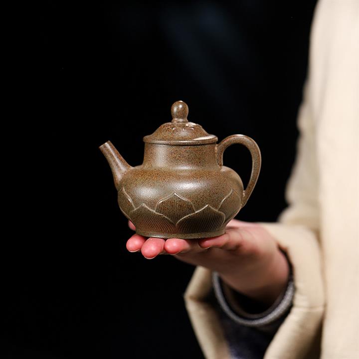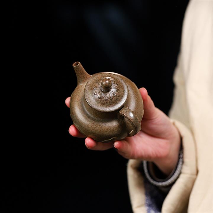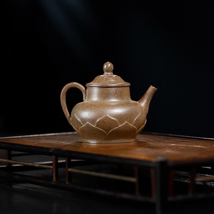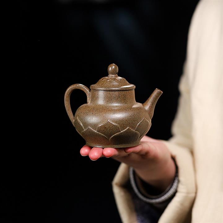 原礦古銅烏泥菱花周盤茶壺POT6991