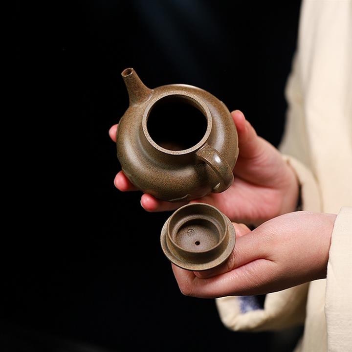 【泥料特點】砂土氣重,似淳實農民,日久使用,漸露鋒芒,養成變化甚大,溫潤莊重。線條優美自然,嘴把搭配協調,身桶配上細長的把搭配,更顯優生動……