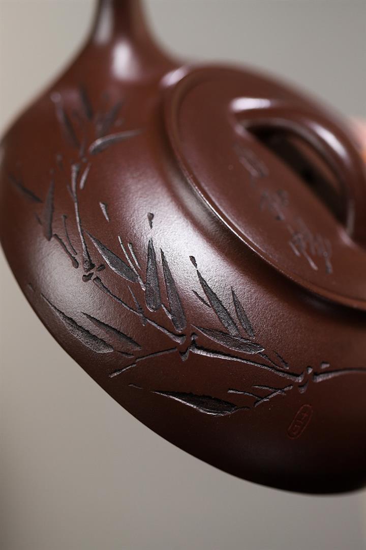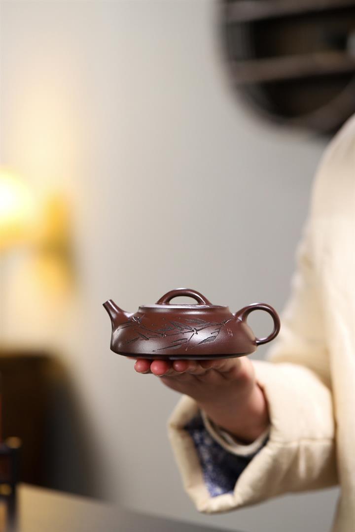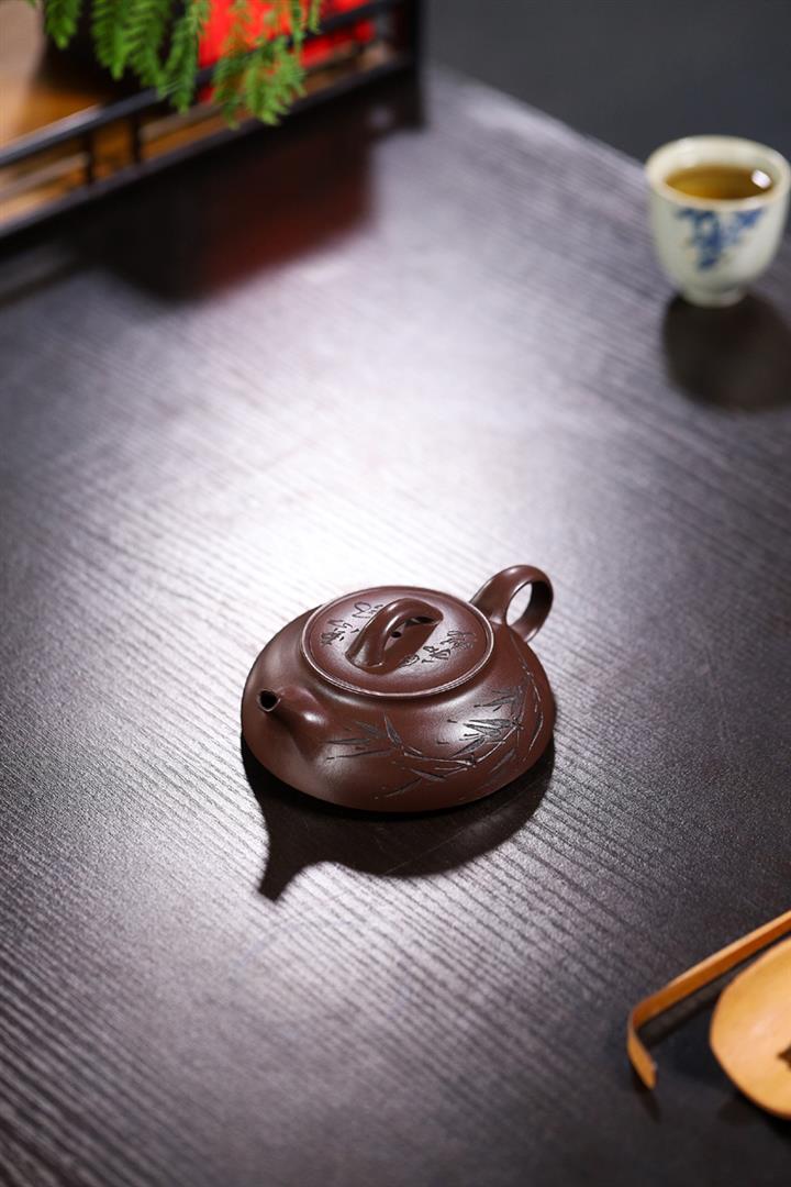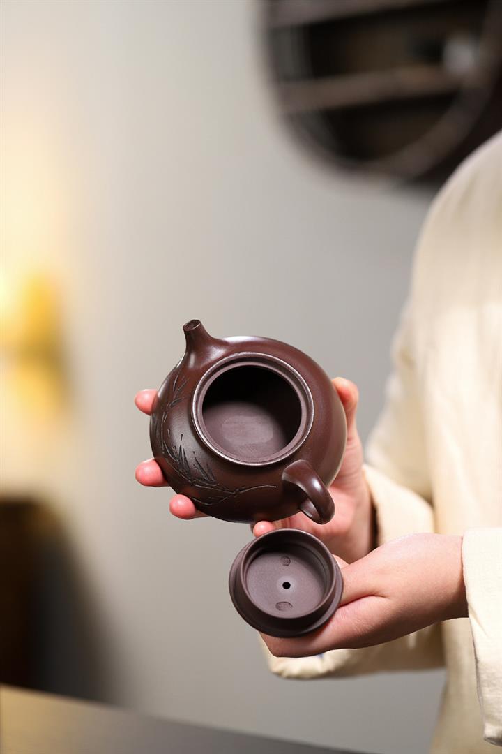 【簡介】此壺器型工整,雍容大方,傳承經典,端莊雅致。,造型風雅,渾厚樸實,質拙中顯高意。整款壺竹韻清疏,泥質細膩,色澤沈郁華貴。蘇東坡“寧可食無肉,不可居無竹”,達文人之意,今寓竹於壺顯清雅。