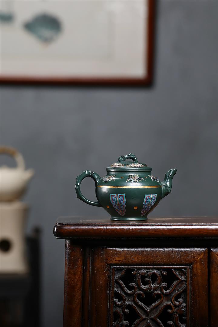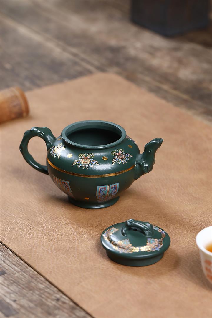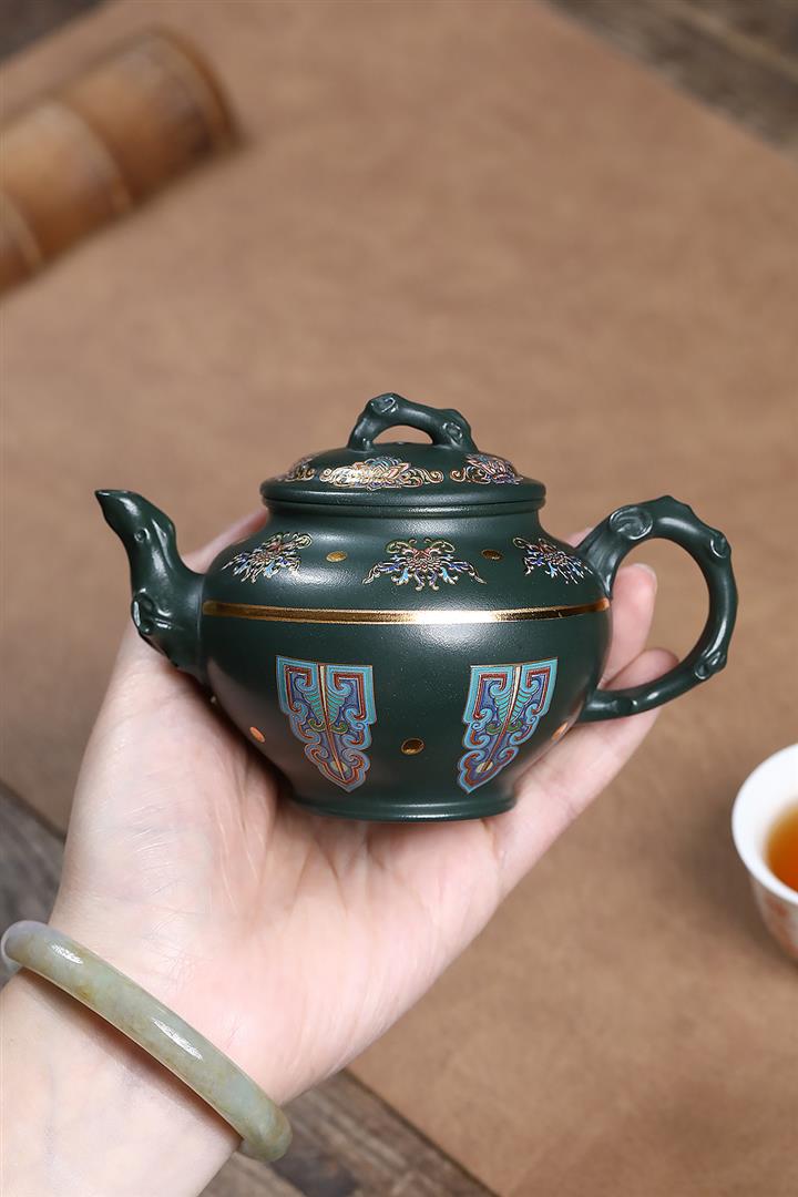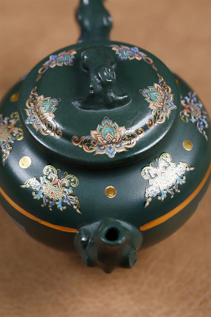 原礦墨綠泥琺瑯彩報春茶壺POT7017