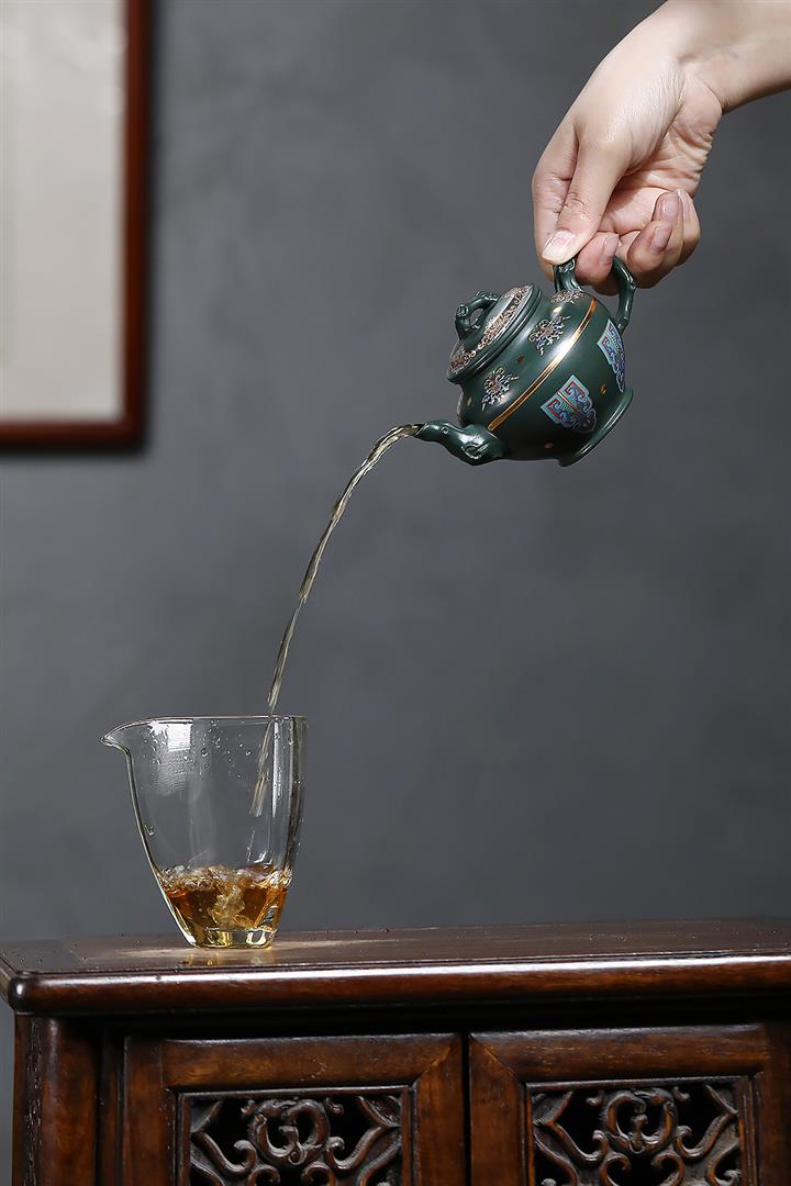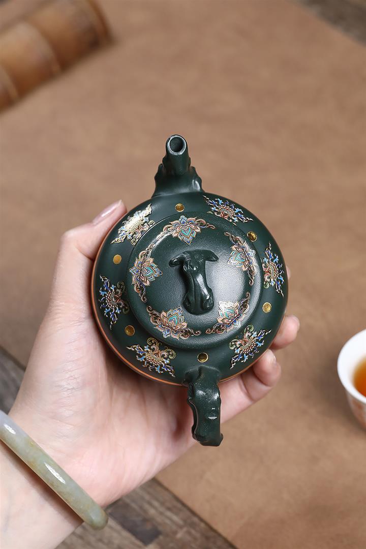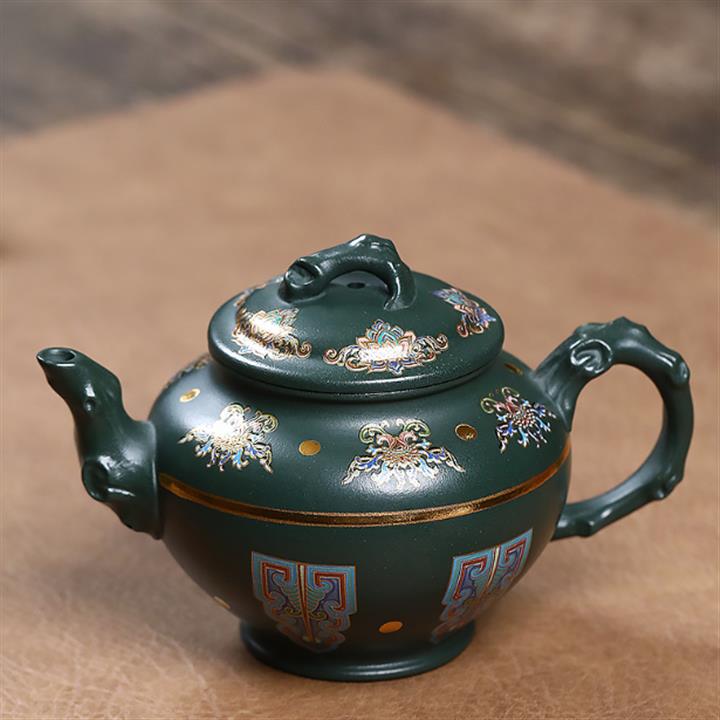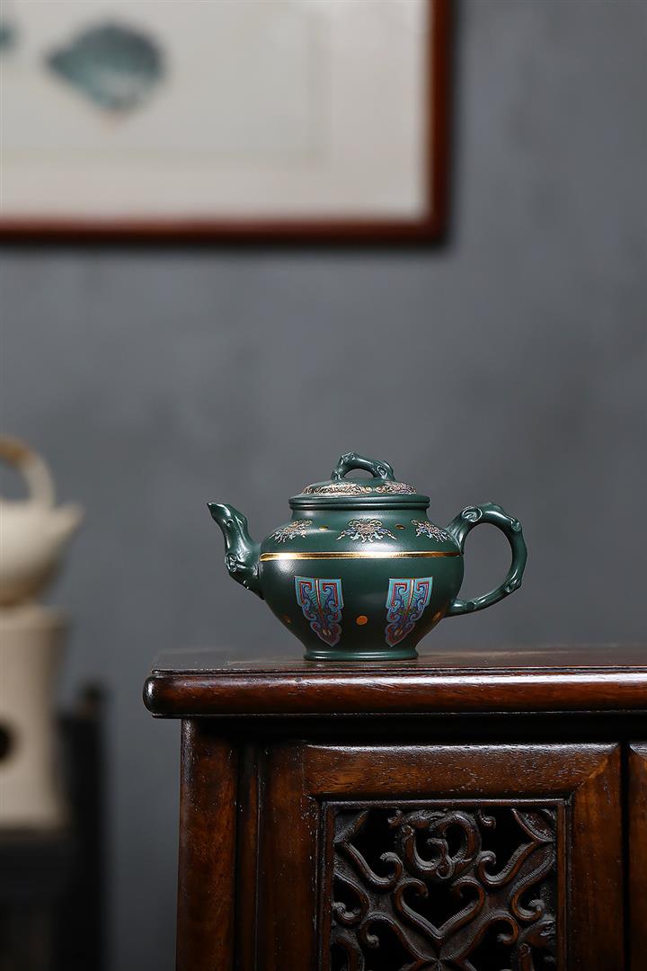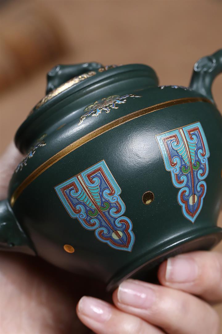 原礦墨綠泥琺瑯彩報春茶壺POT7017
