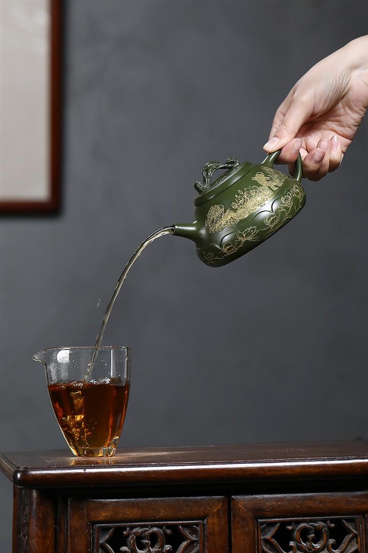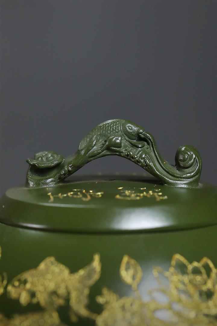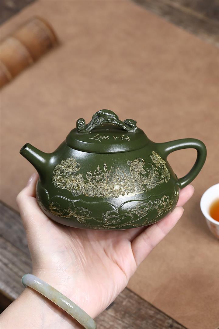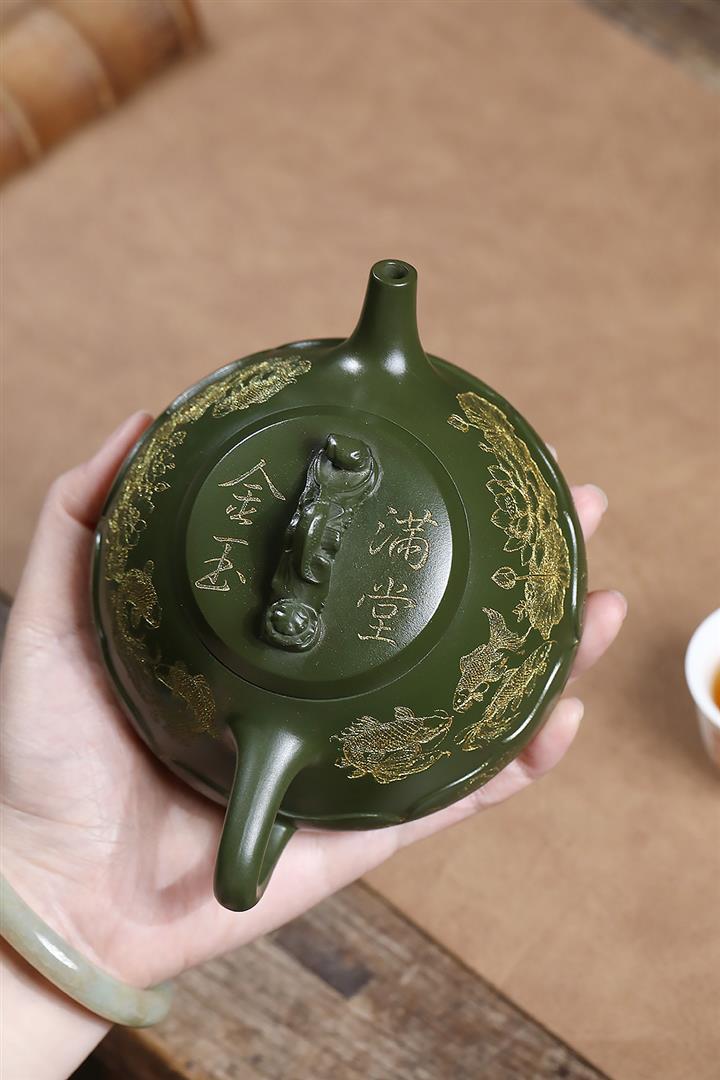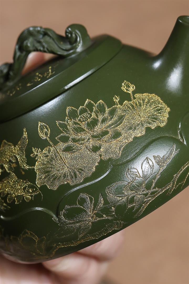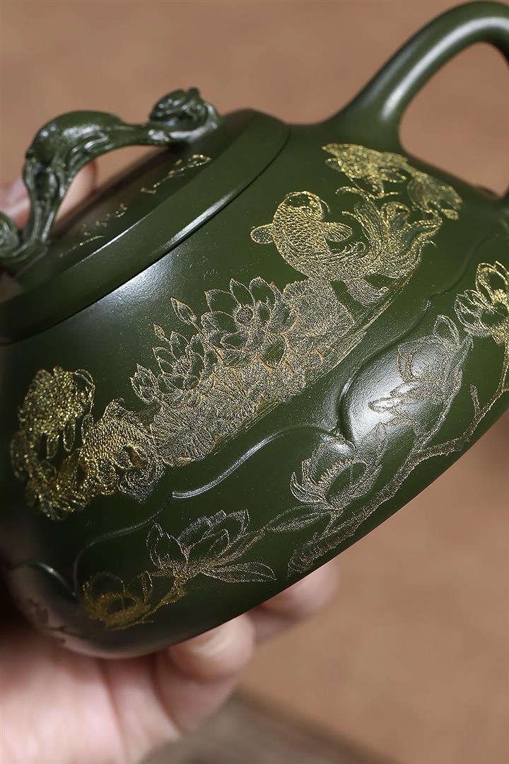 原礦翡翠綠泥金玉滿堂茶壺POT7019