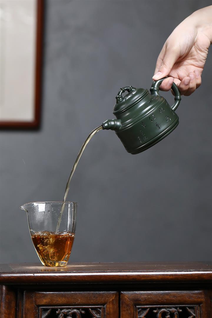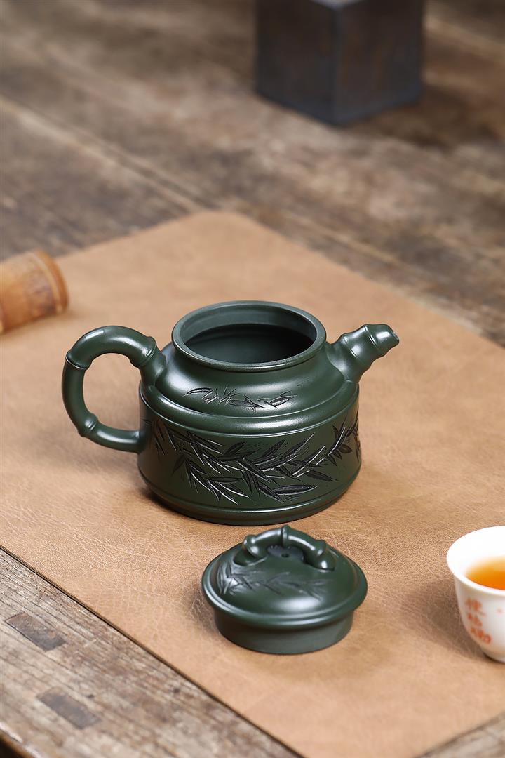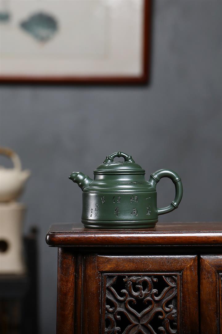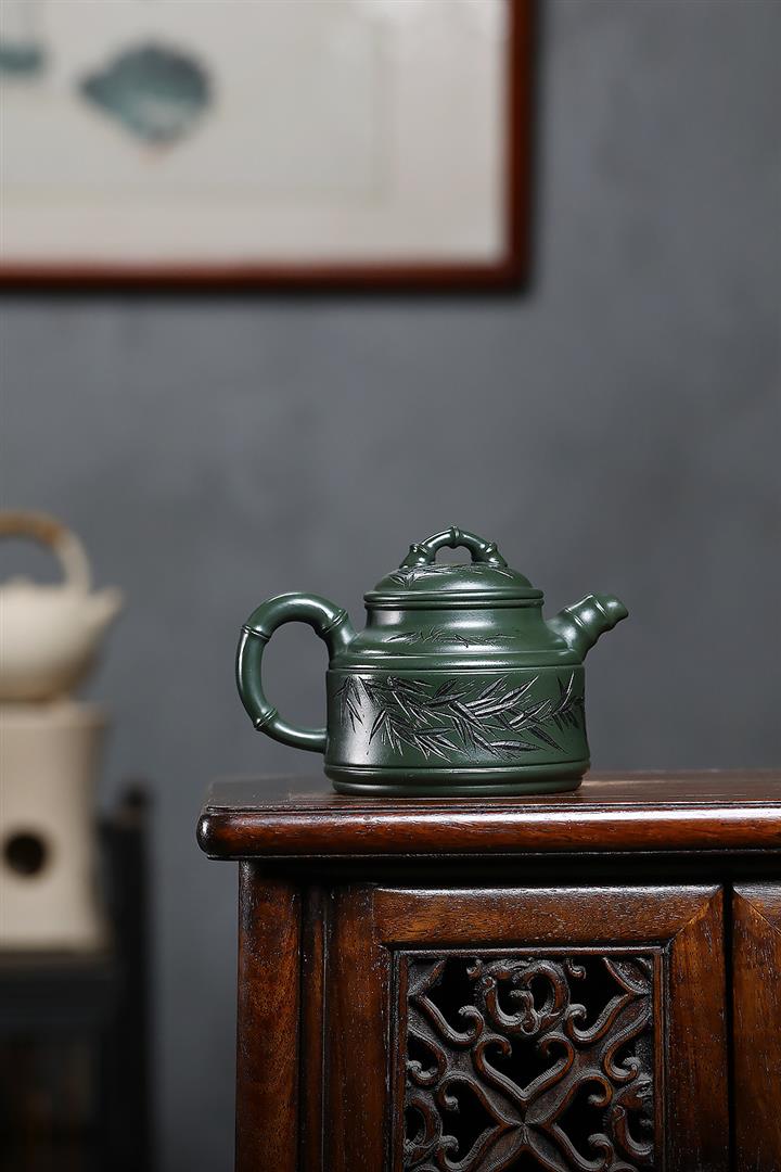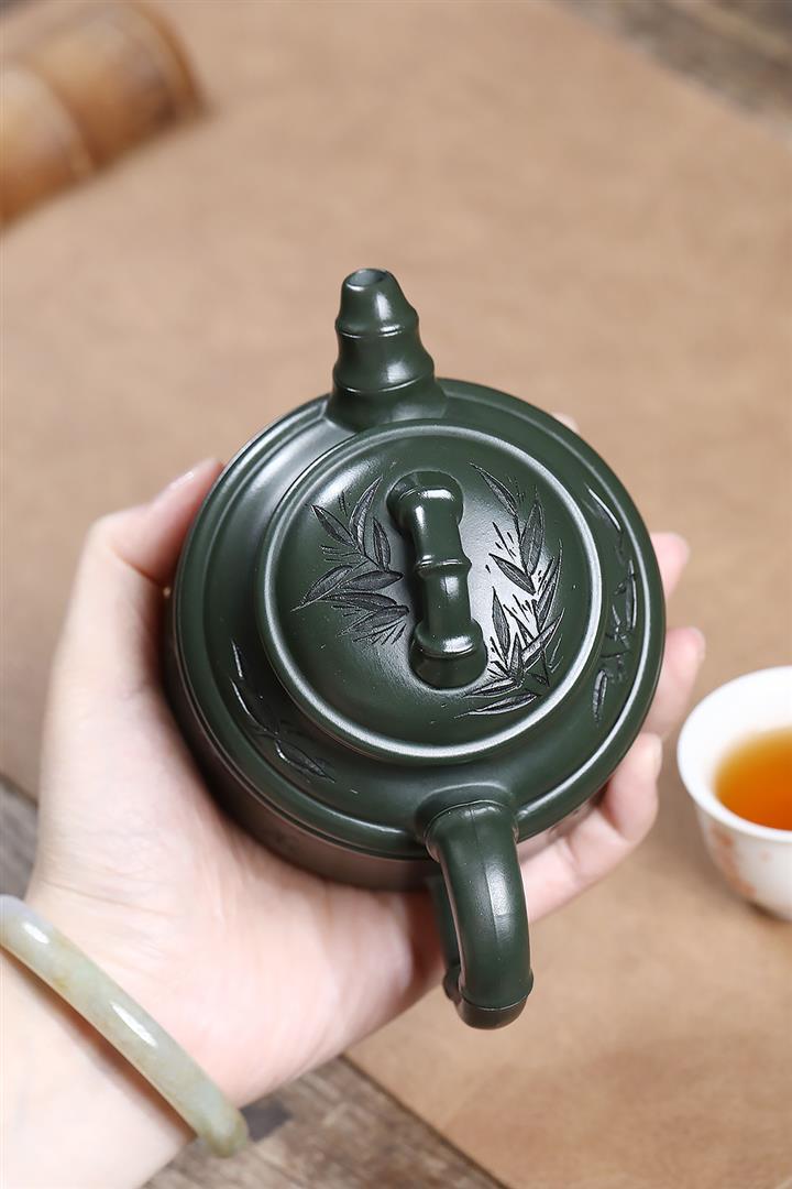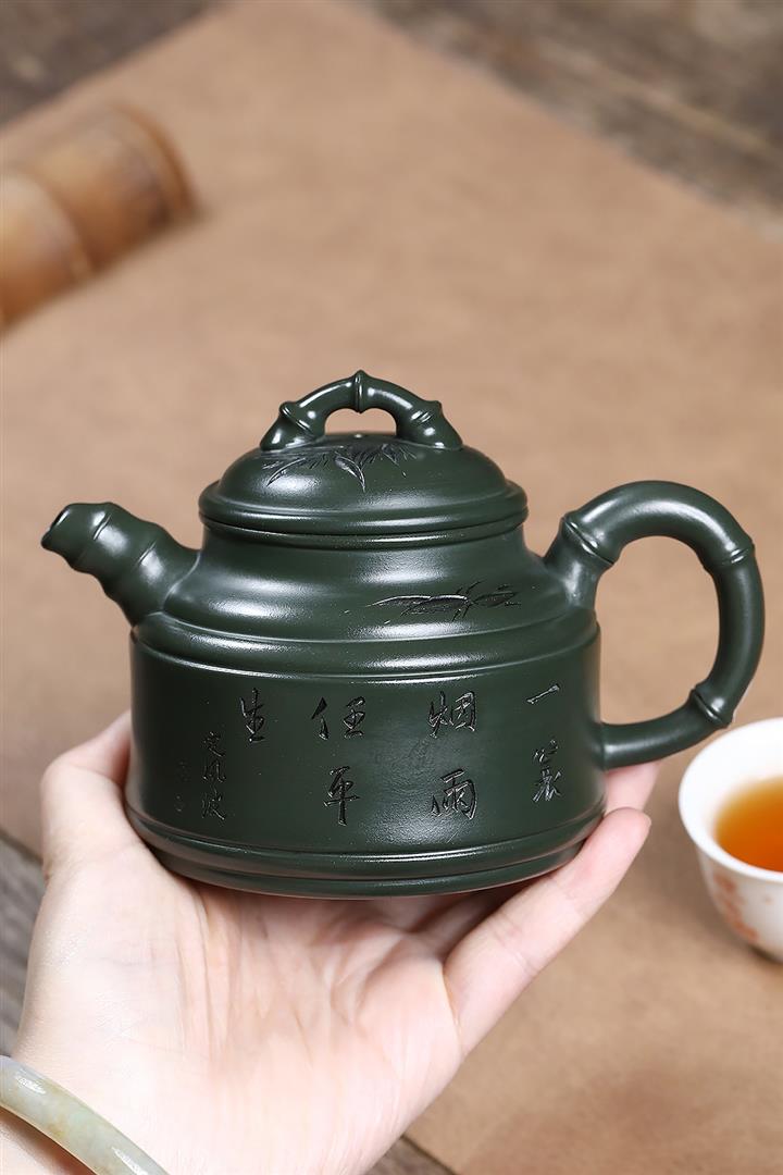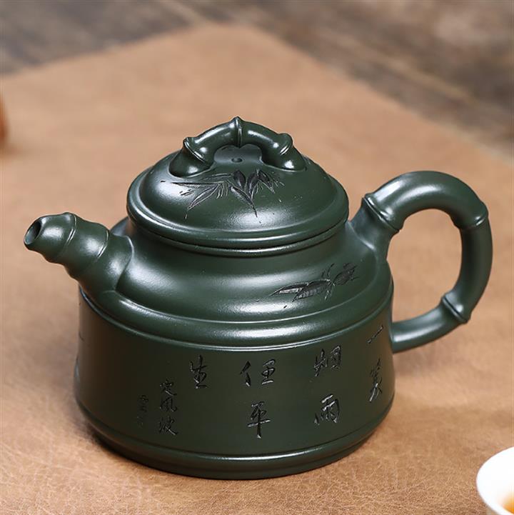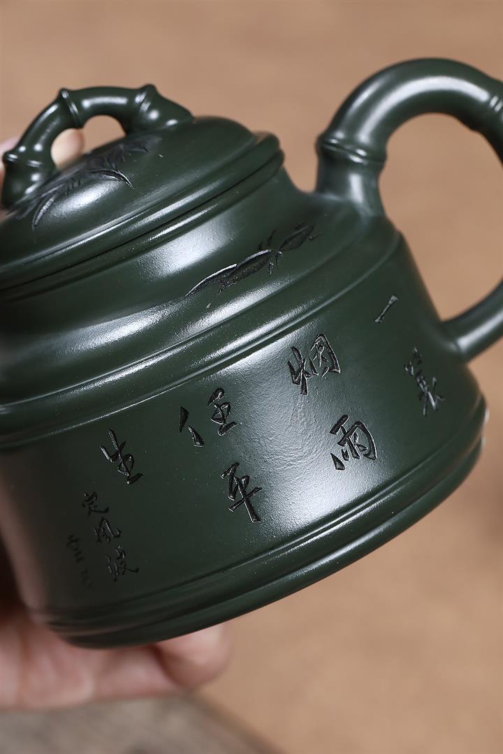 原礦墨綠泥任平生竹鼎茶壺POT7020