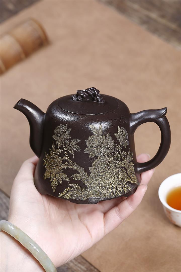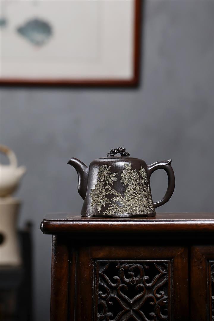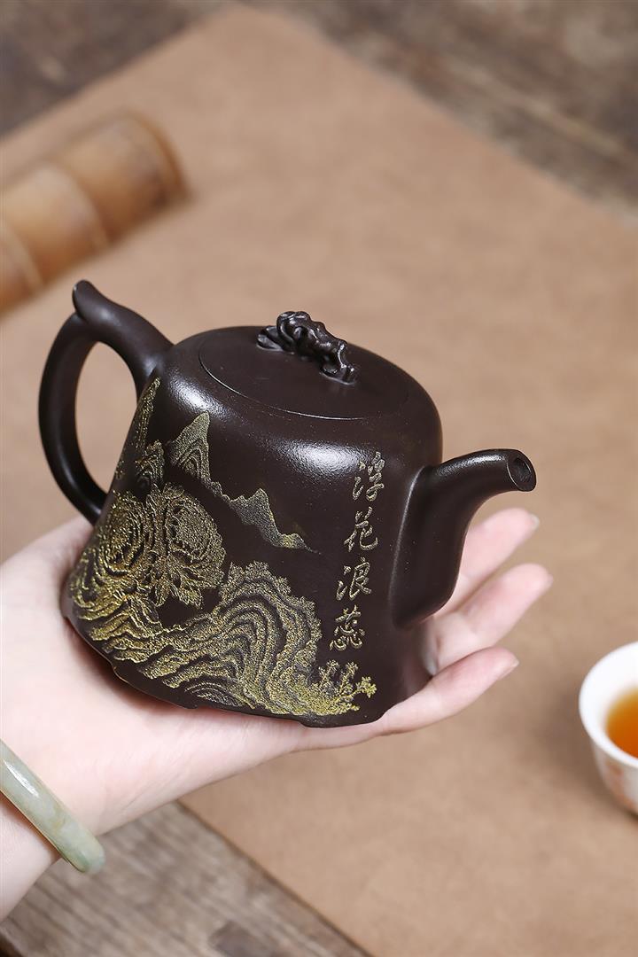 原礦玄鐵石黃浮花浪蕊茶壺POT7024