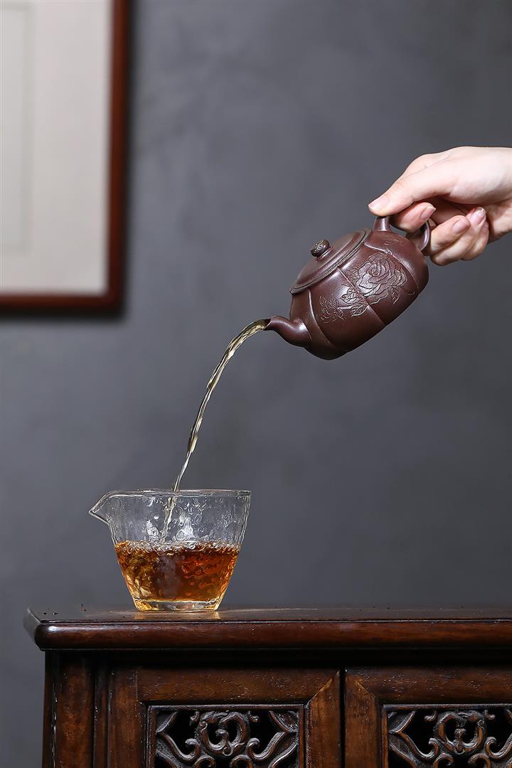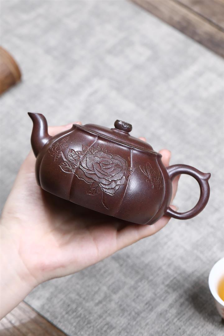 原礦雲霧沈香筋紋牡丹茶壺POT7035
