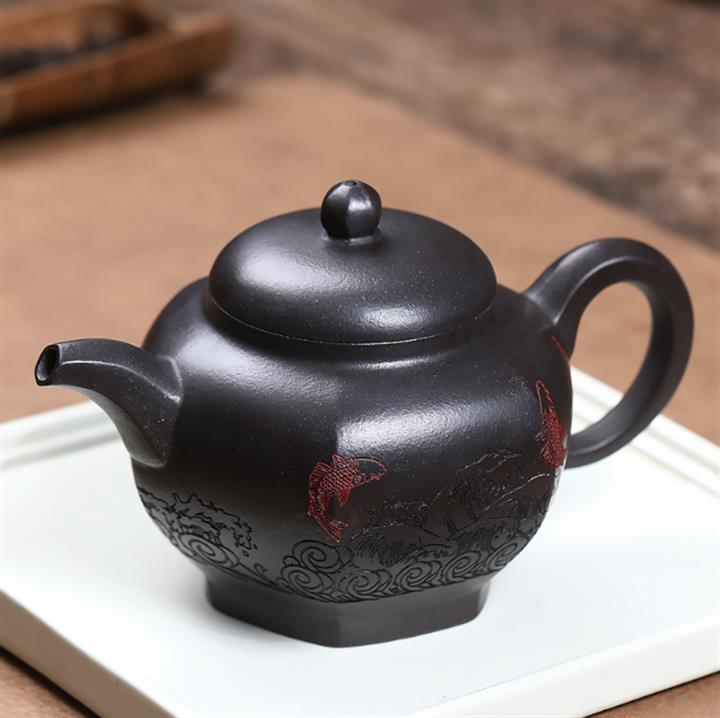 原礦大紅袍焐灰魚躍龍門茶壺POT7042