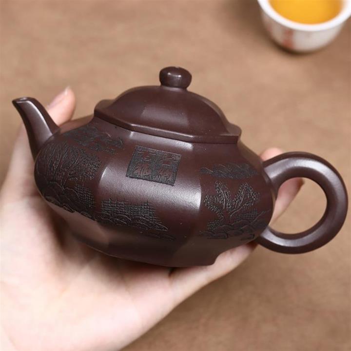 原礦紫泥八方山水笑櫻茶壺POT7036