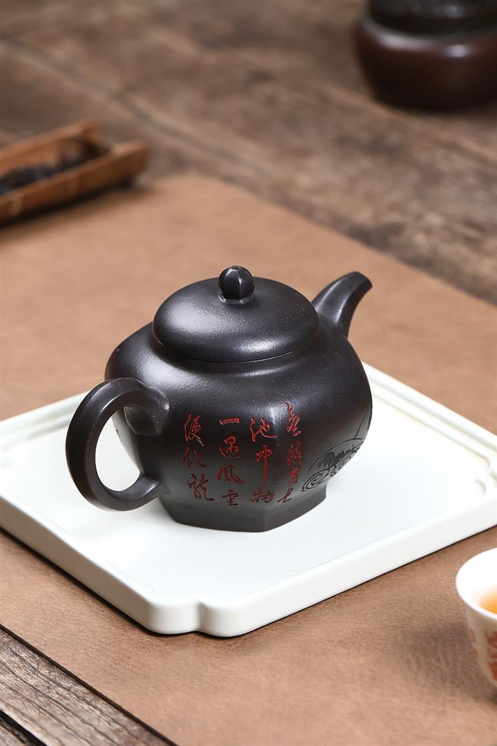 原礦陳腐黑泥六方掇只茶壺POT7045