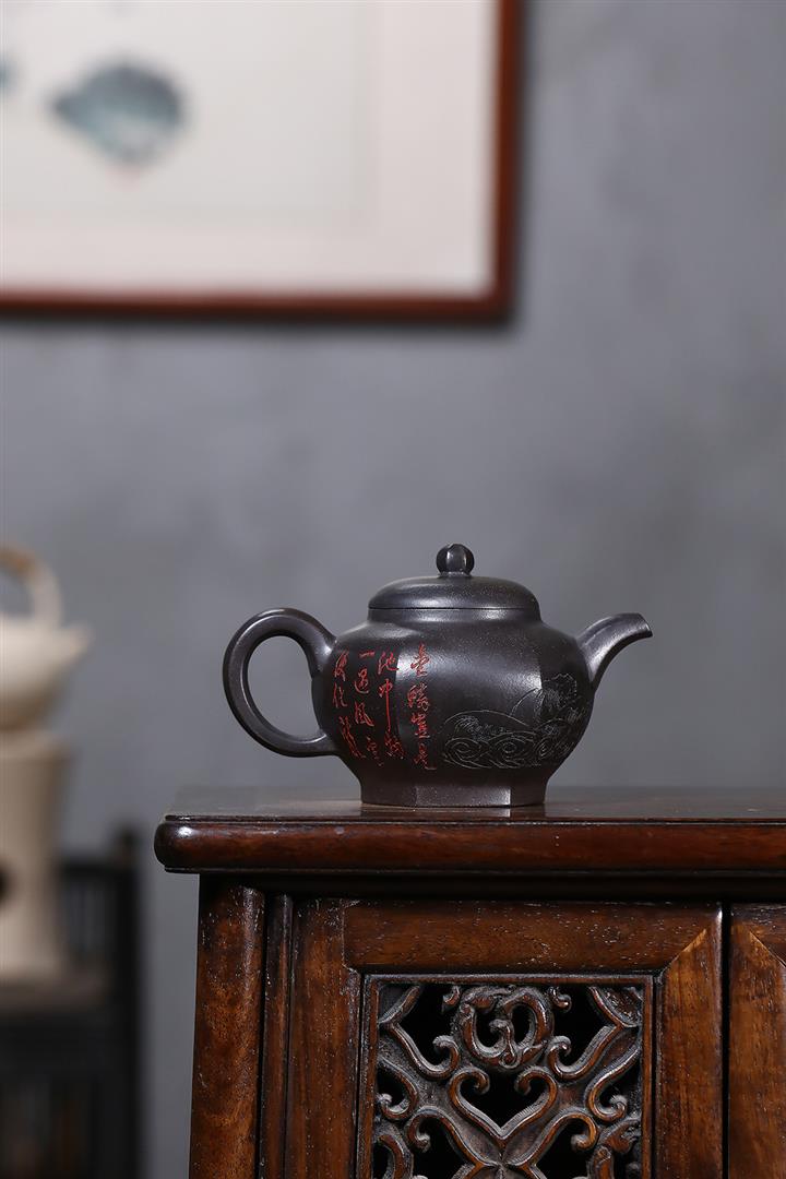 原礦紫泥八方納百福茶壺POT7046