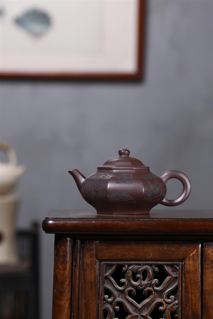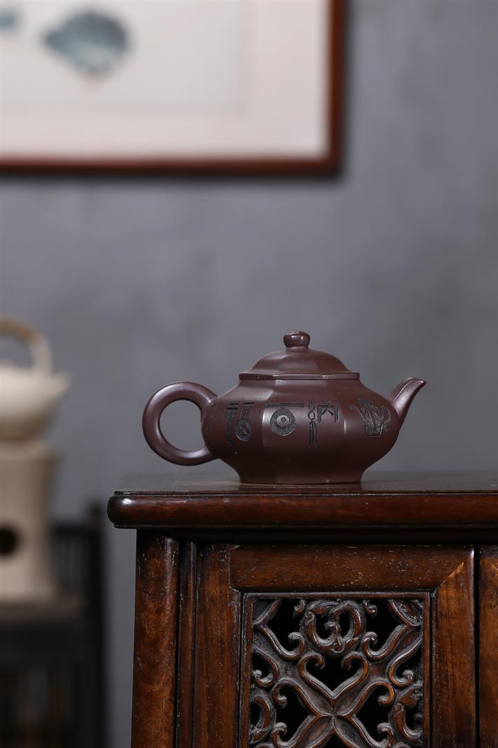 原礦紫泥八方納百福茶壺POT7046