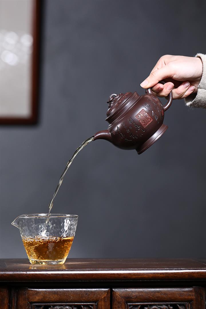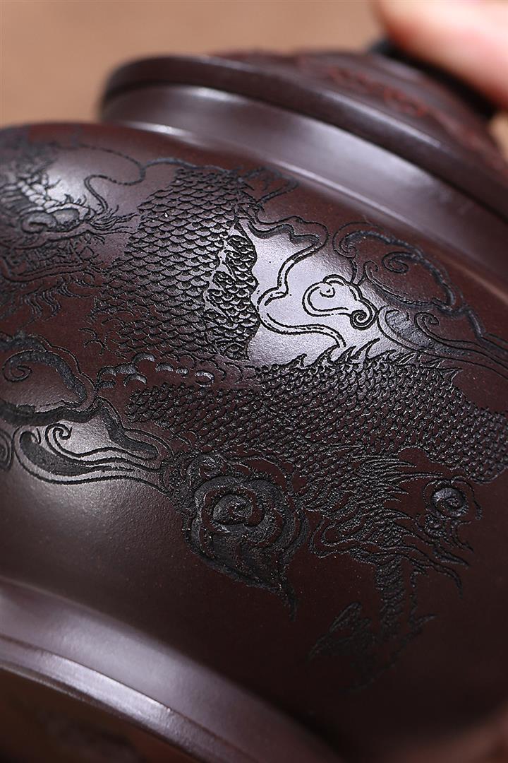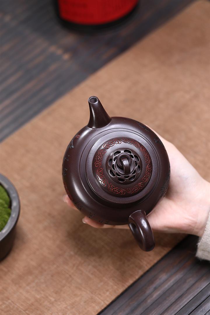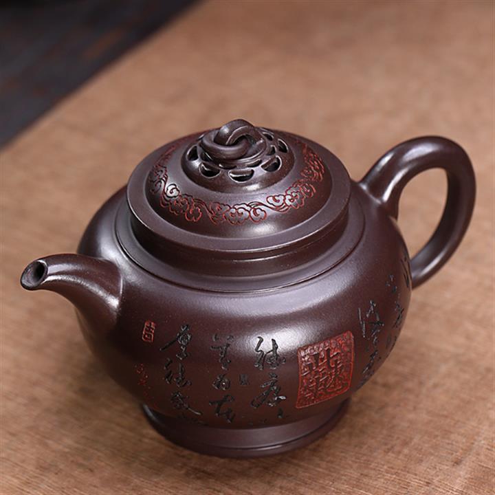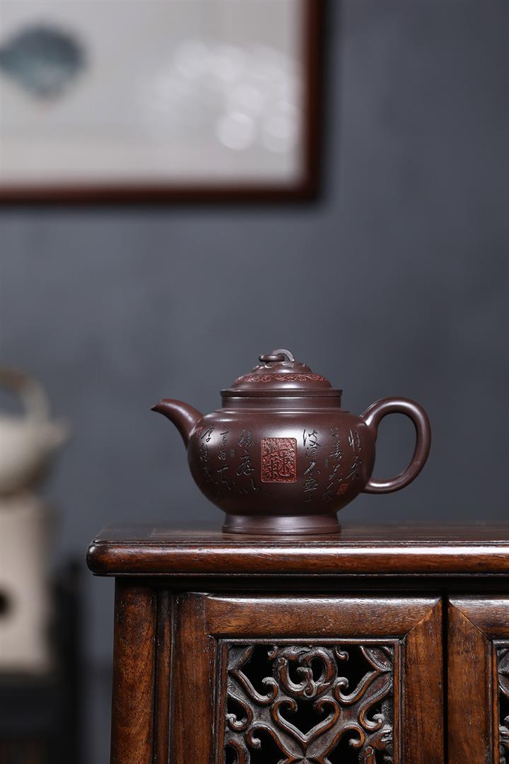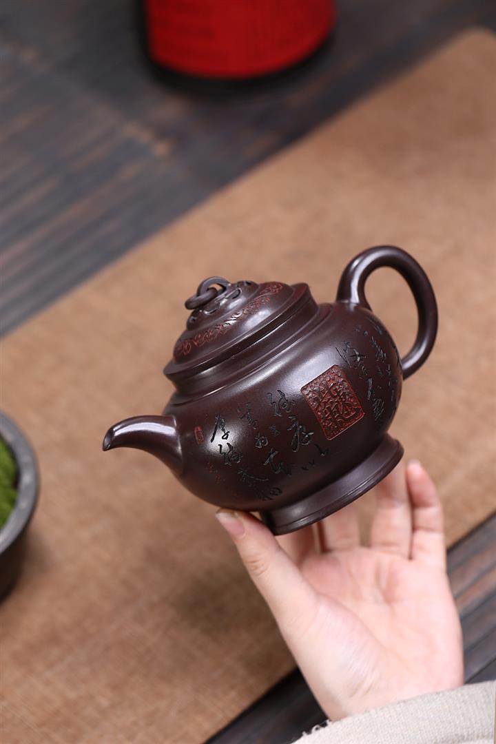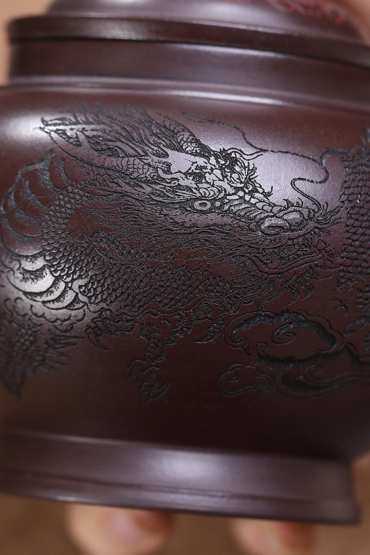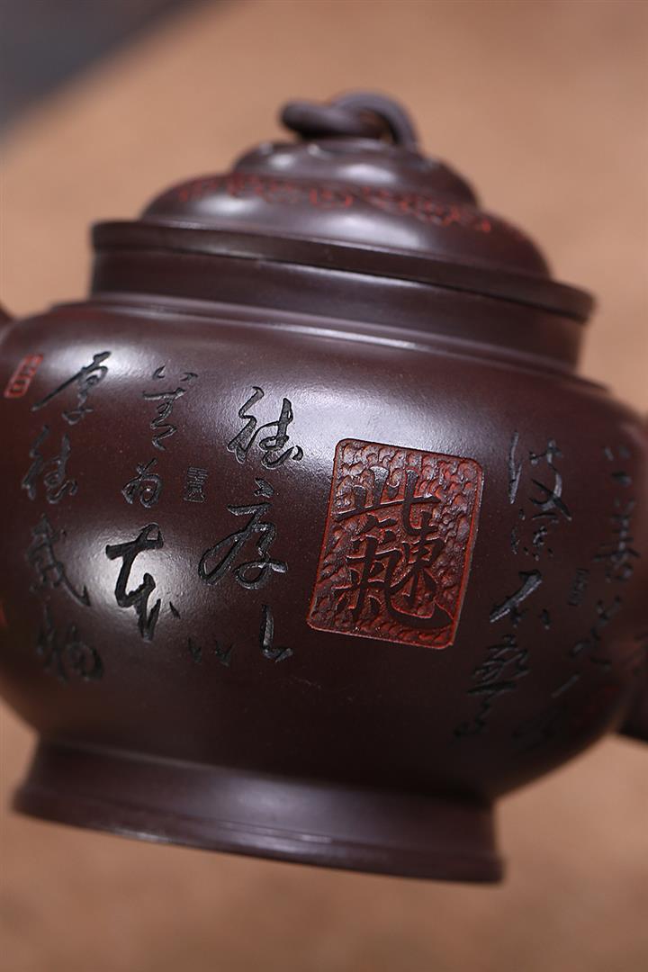 原礦紫泥刻繪山水德鐘茶壺POT7056