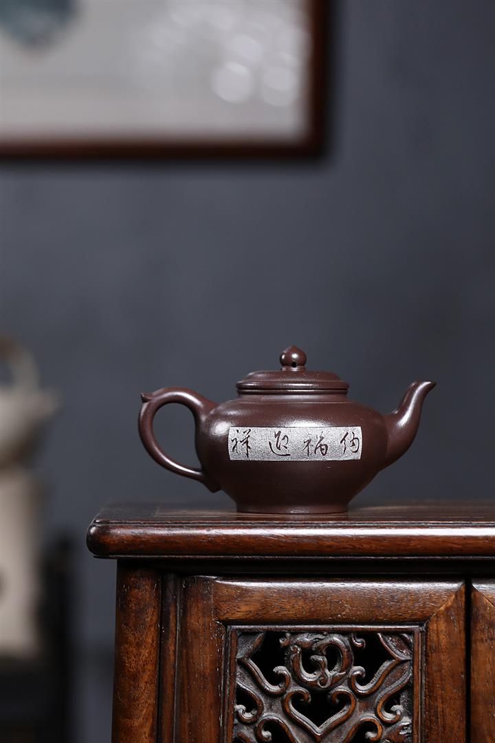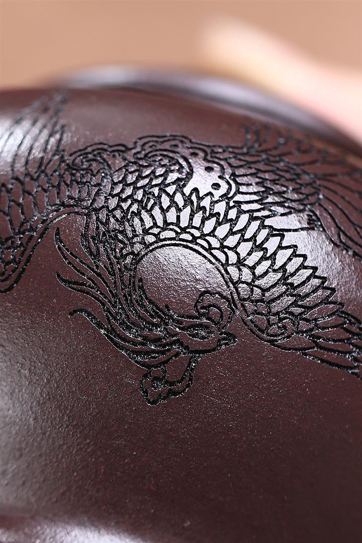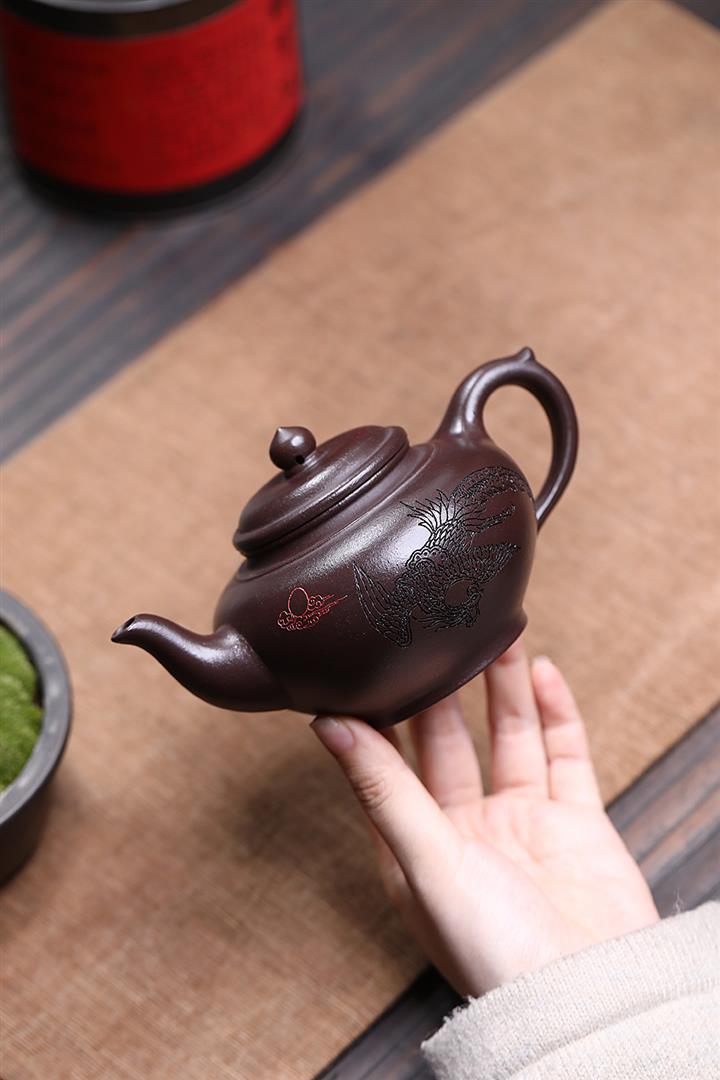 原礦紫泥刻繪山水德鐘茶壺POT7056