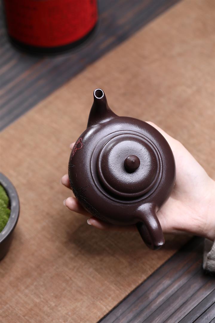 原礦紫泥刻繪傲梅容天茶壺POT7055