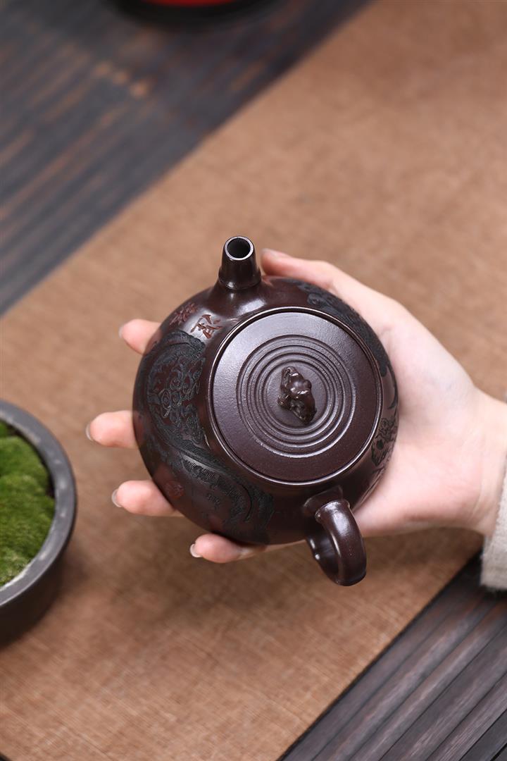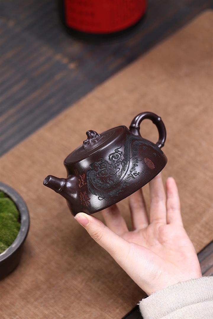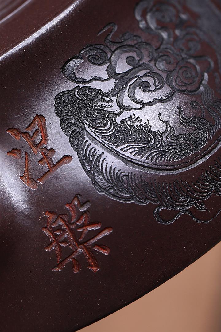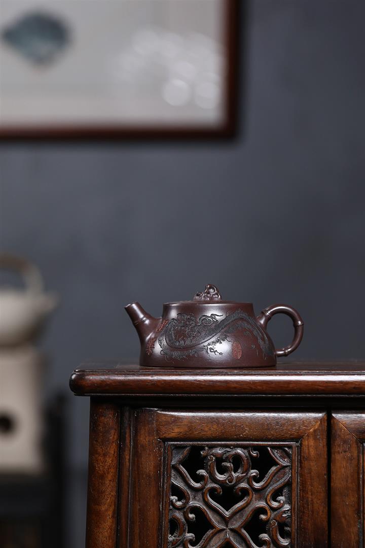 原礦紫泥刻繪山水德鐘茶壺POT7056