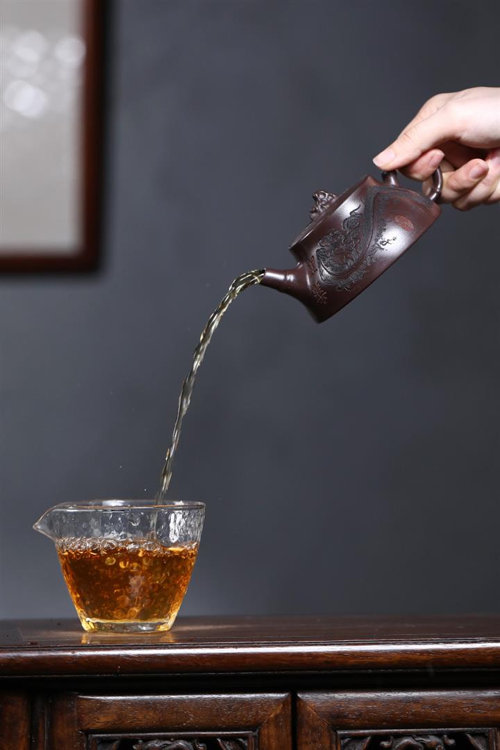 原礦紫泥刻繪傲梅容天茶壺POT7055