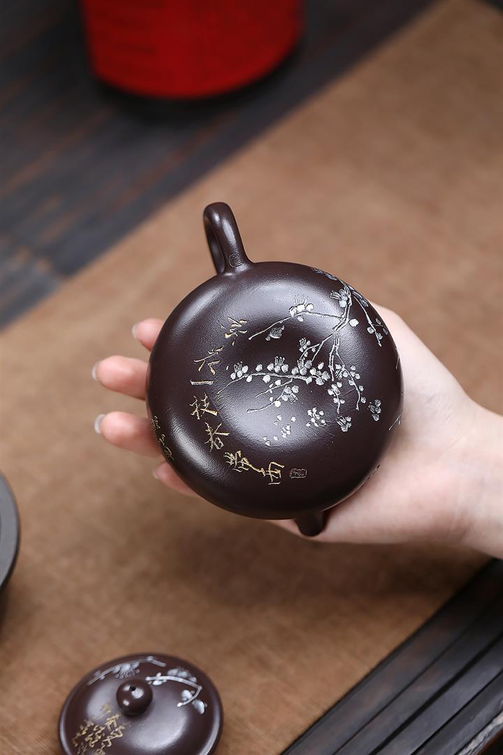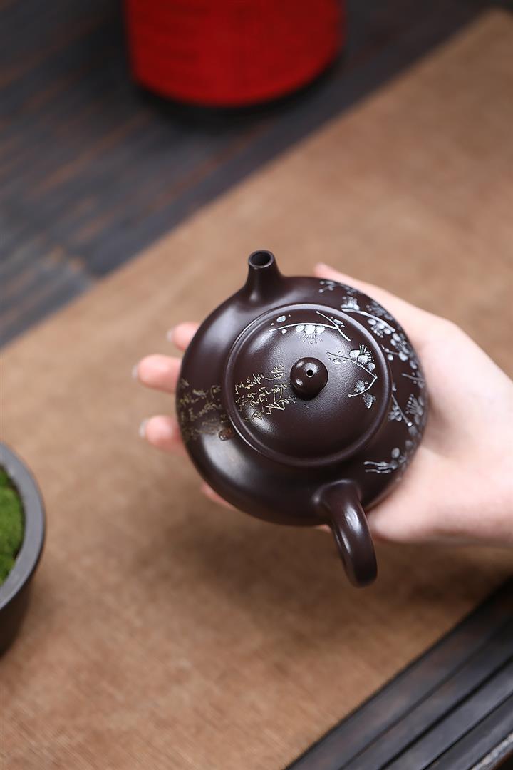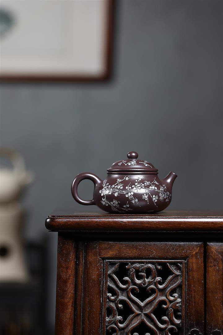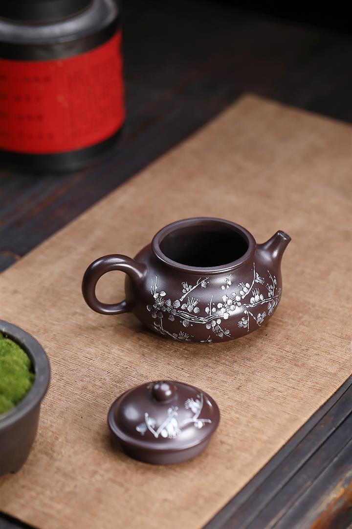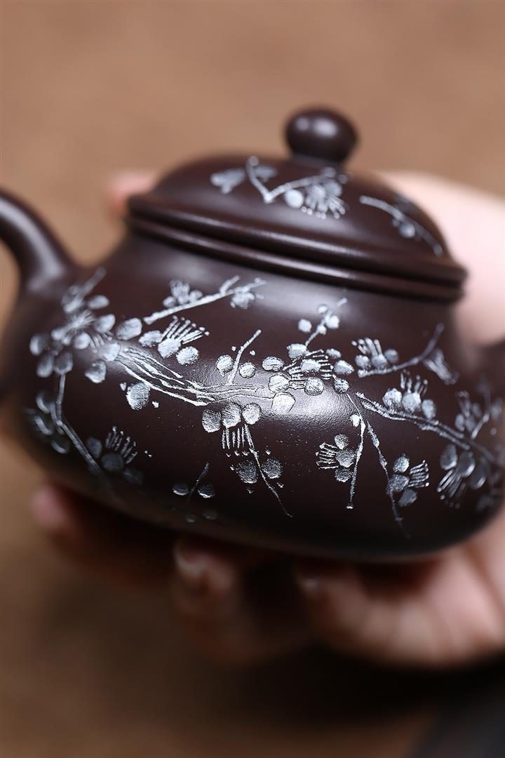 原礦紫泥刻繪傲梅容天茶壺POT7055