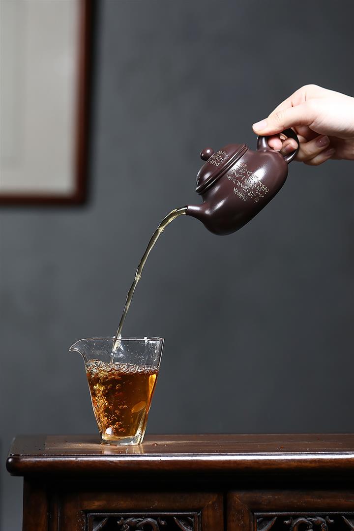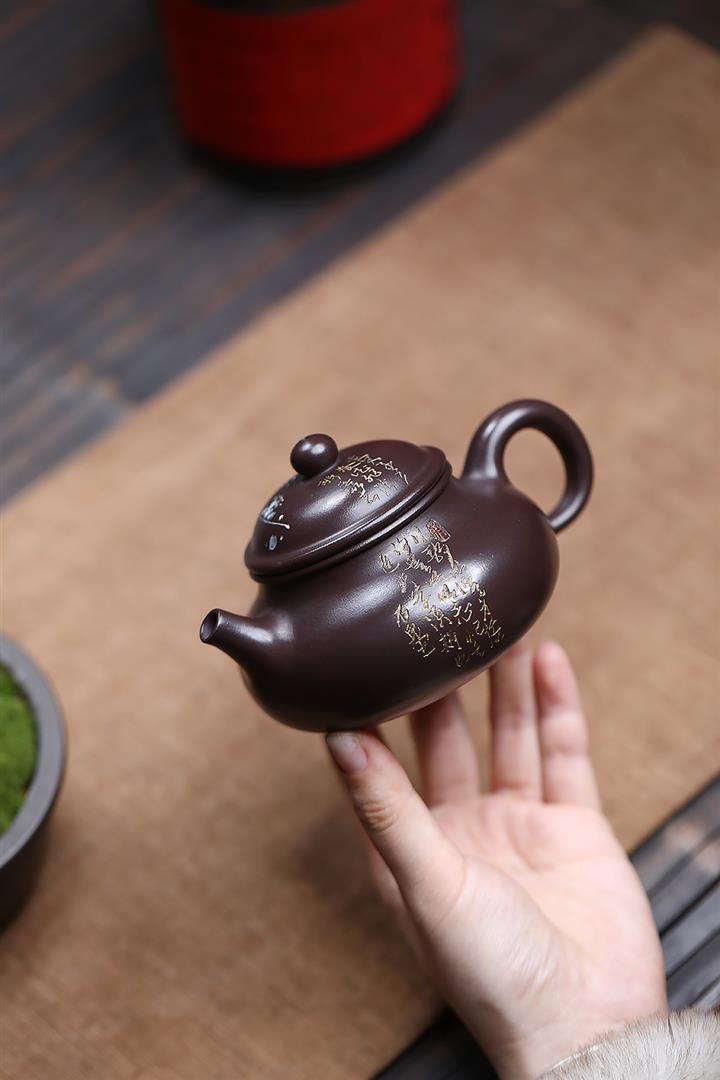 原礦紫泥刻繪山水德鐘茶壺POT7056