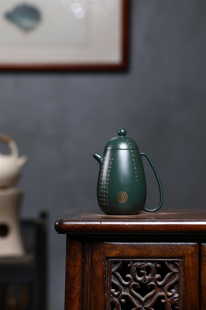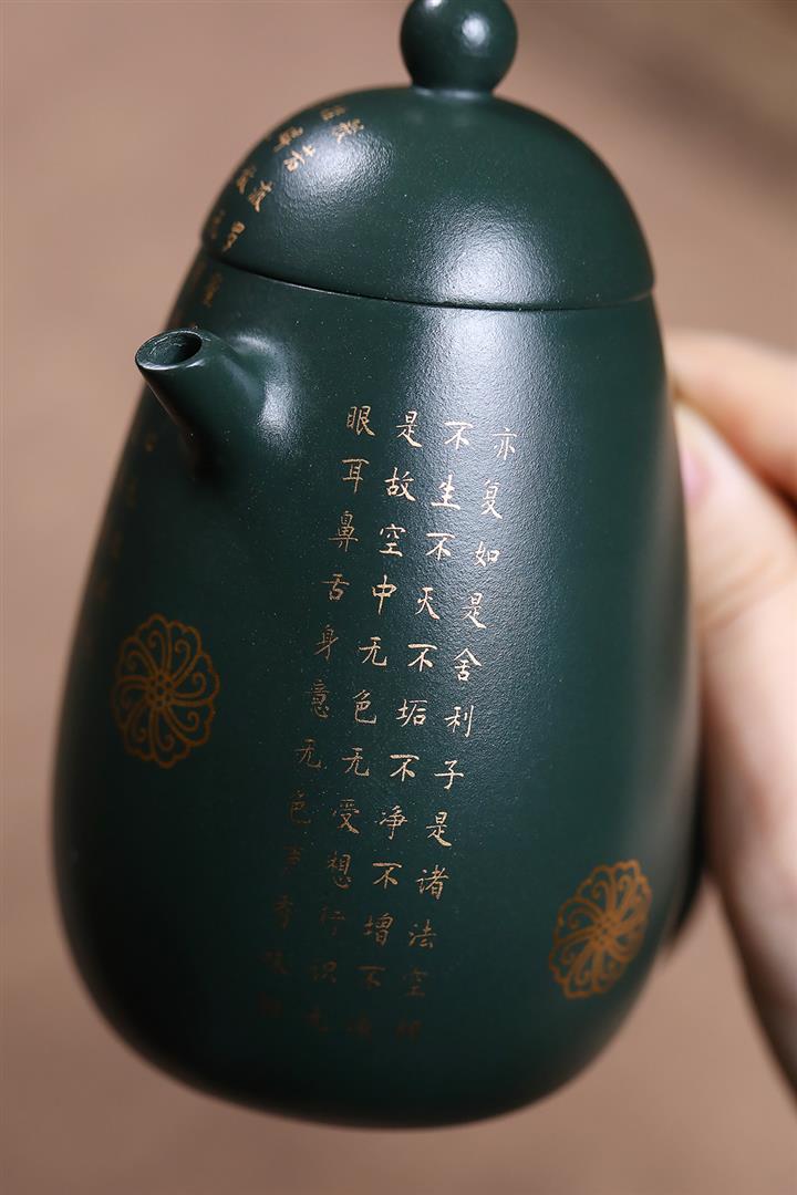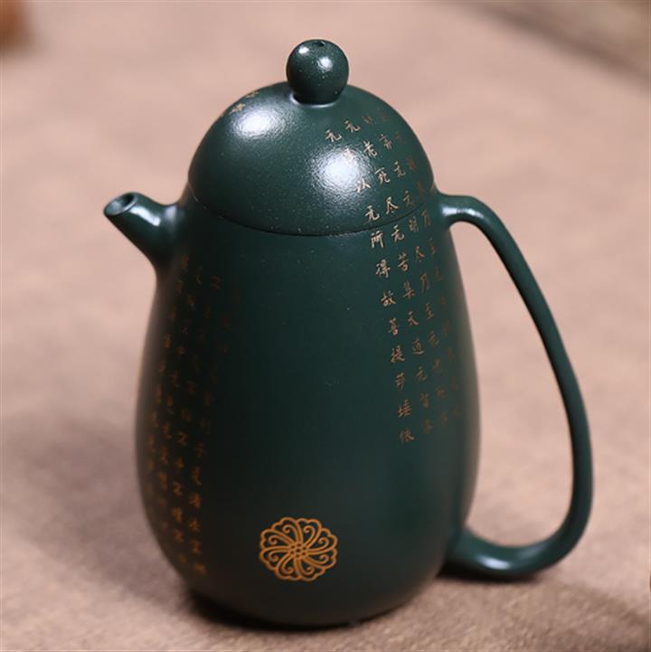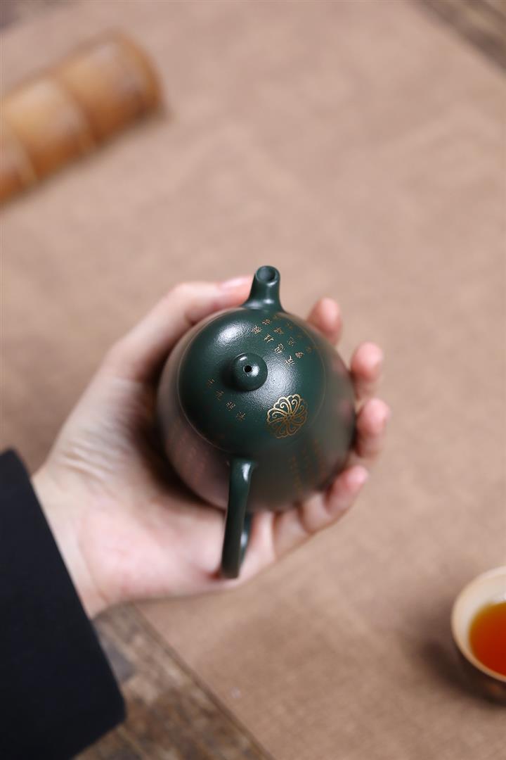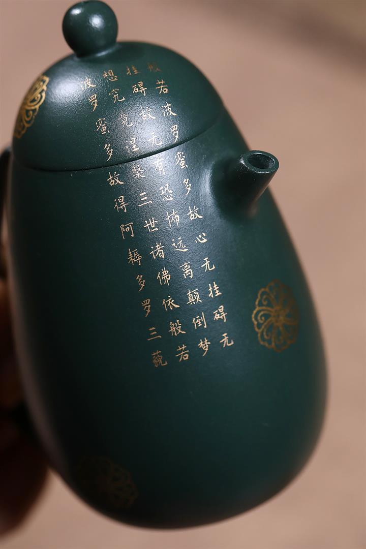 原礦墨綠泥描金高龍蛋茶壺POT7077