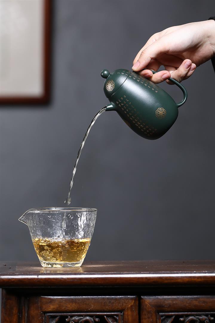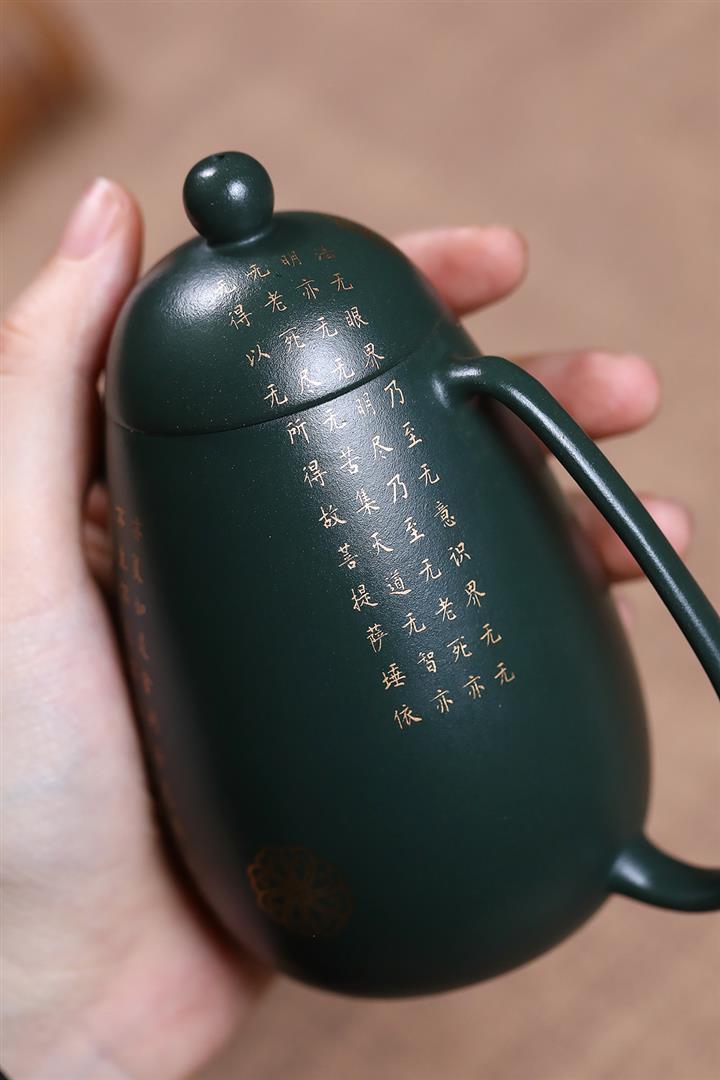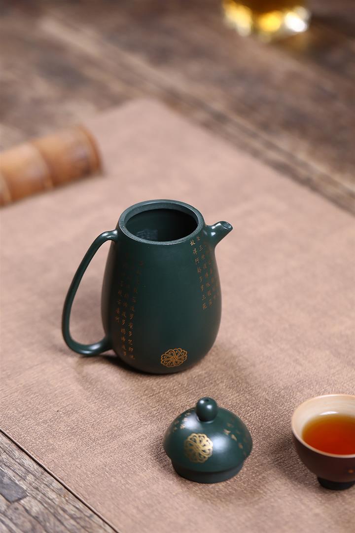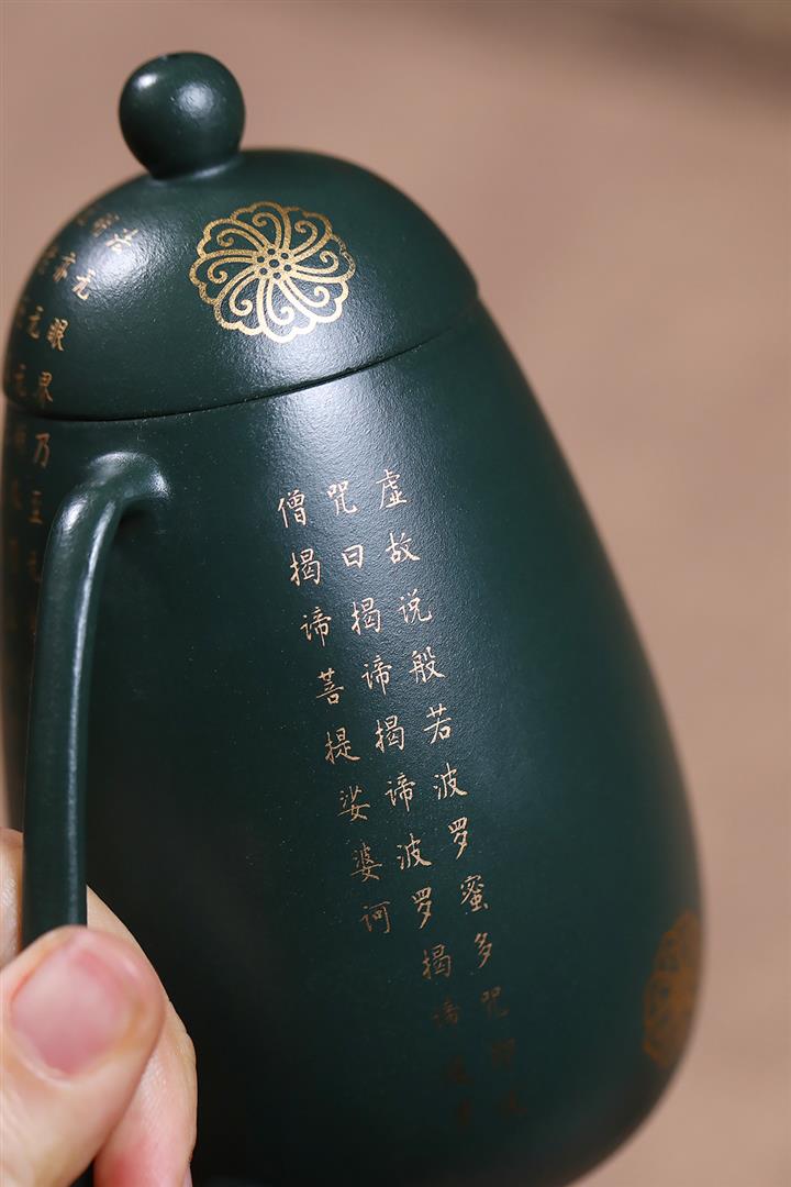 原礦墨綠泥描金高龍蛋茶壺POT7077