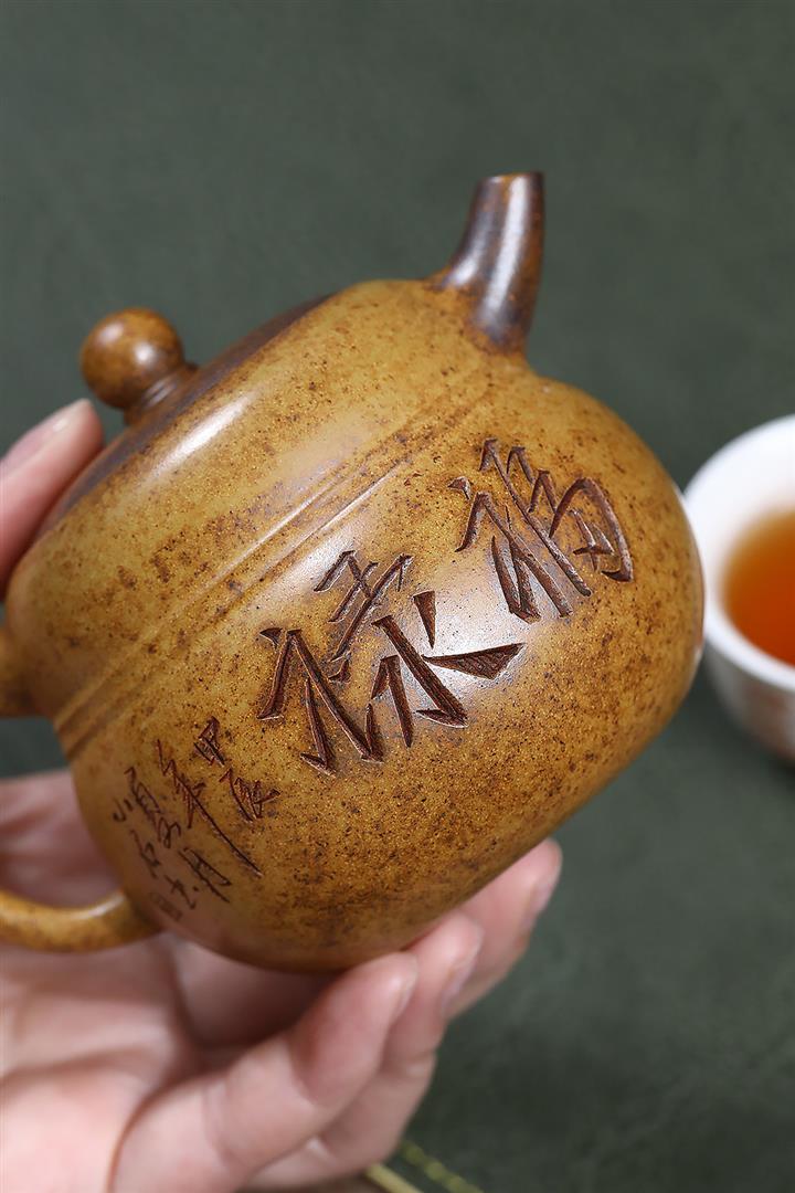 原礦紫泥描金霸王石瓢茶壺POT7082
