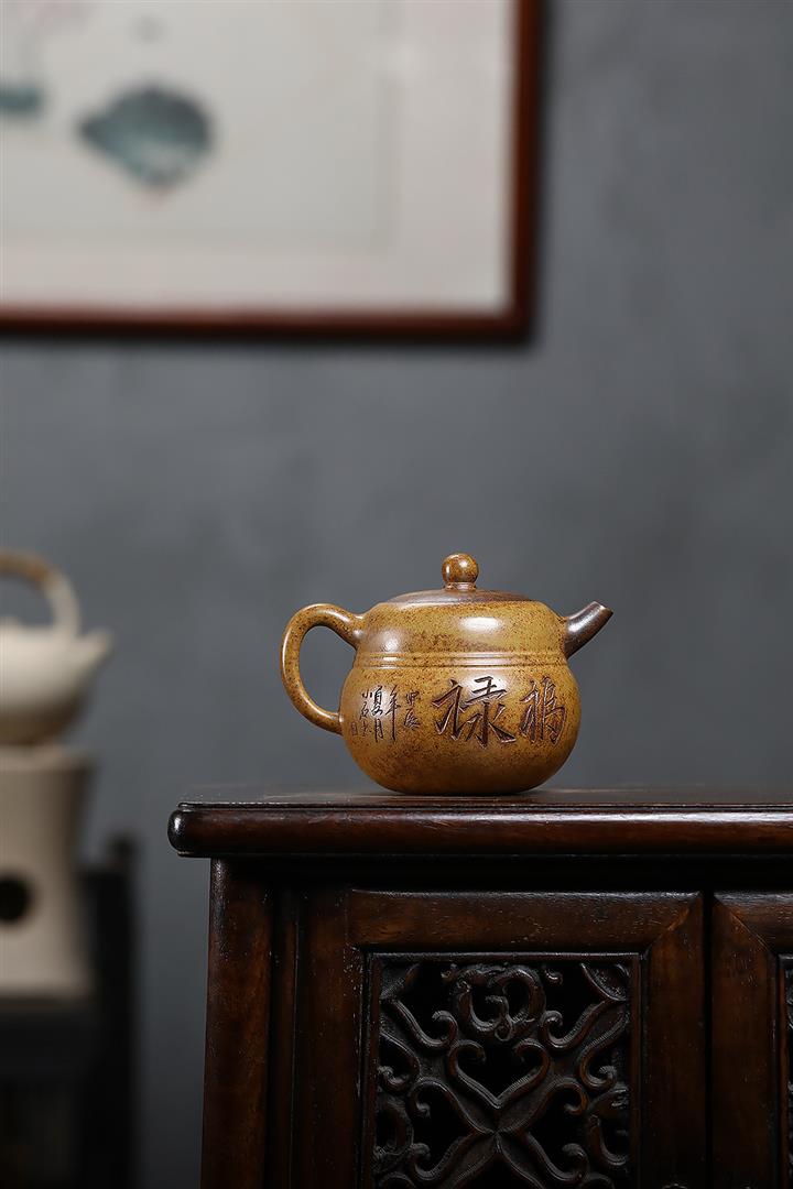 原礦黃金段泥純全手工秦權茶壺POT7088