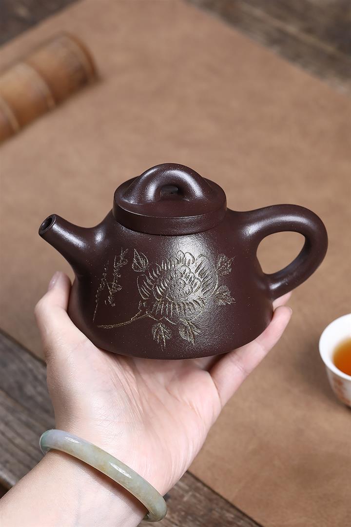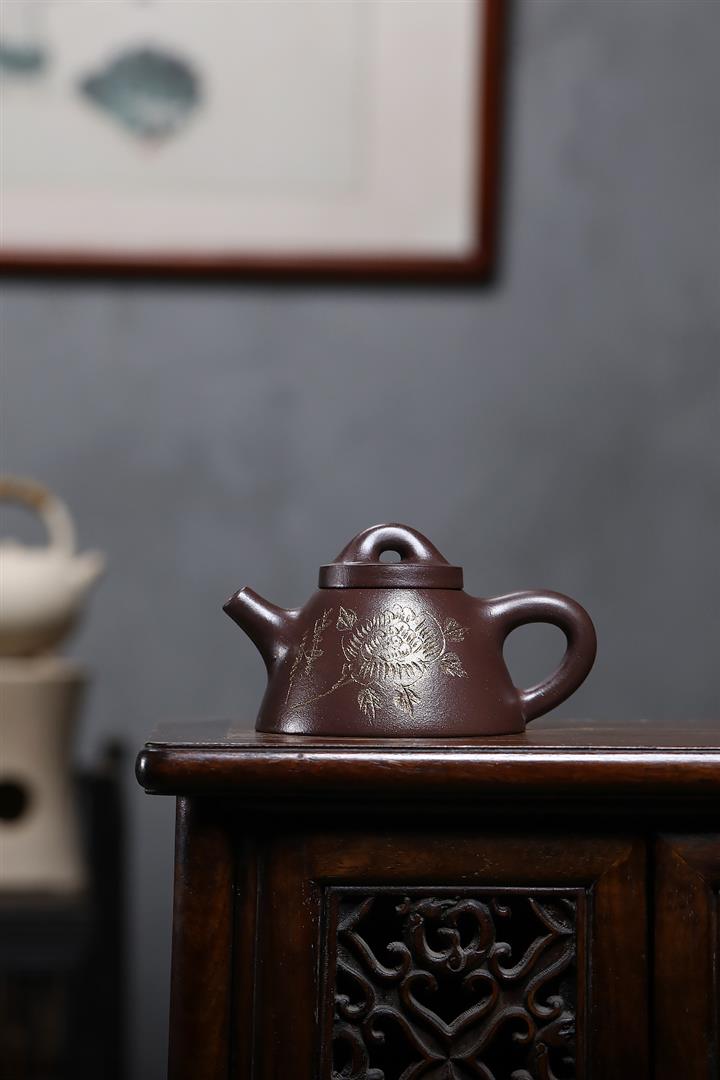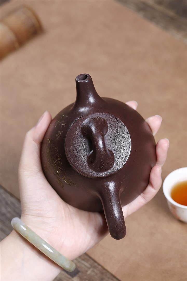 原礦紫泥描金霸王石瓢茶壺POT7082