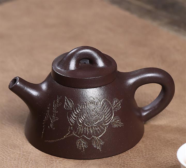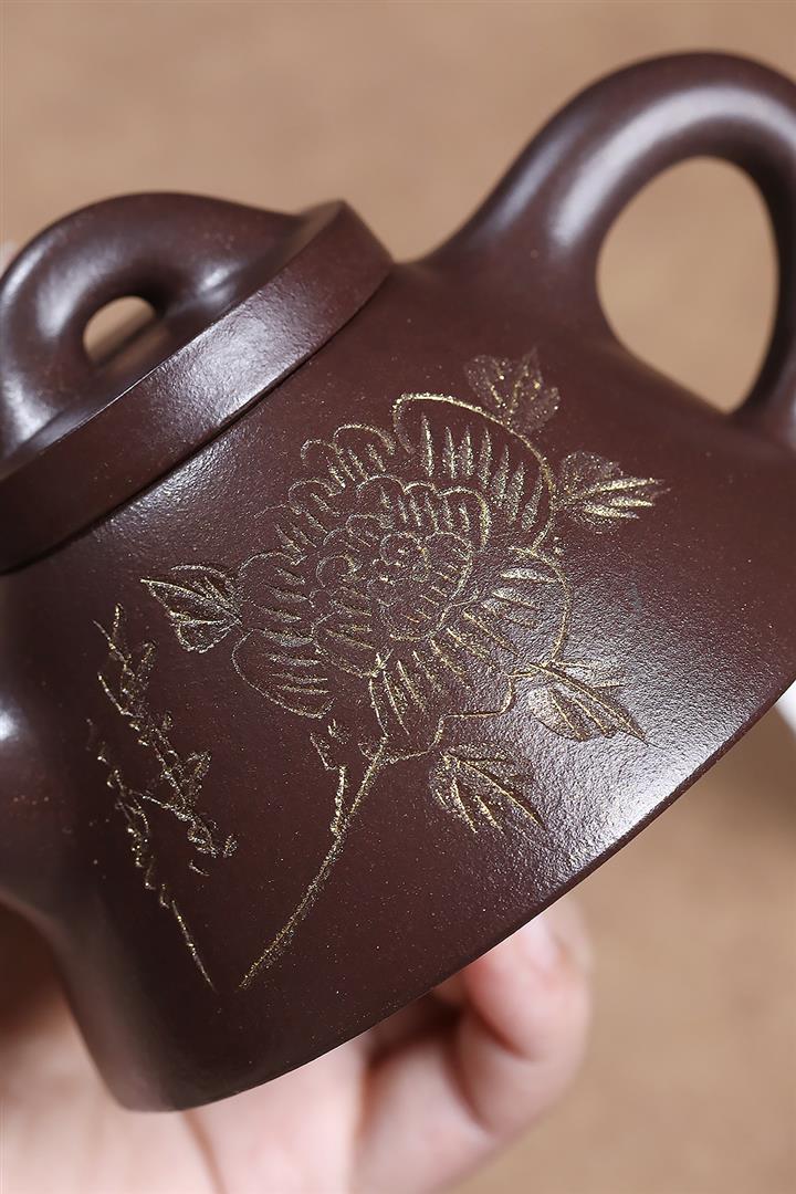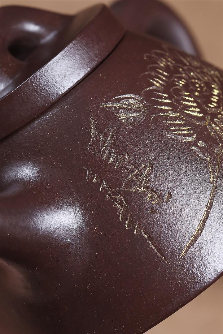 原礦古烏泥金刻百福子冶茶壺POT7091