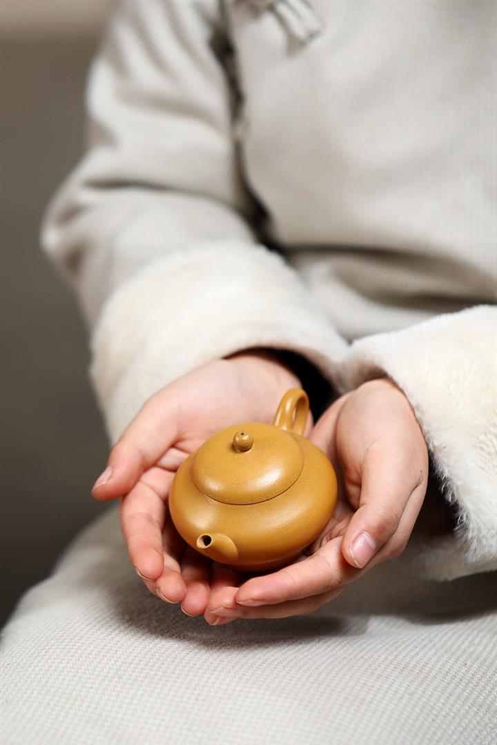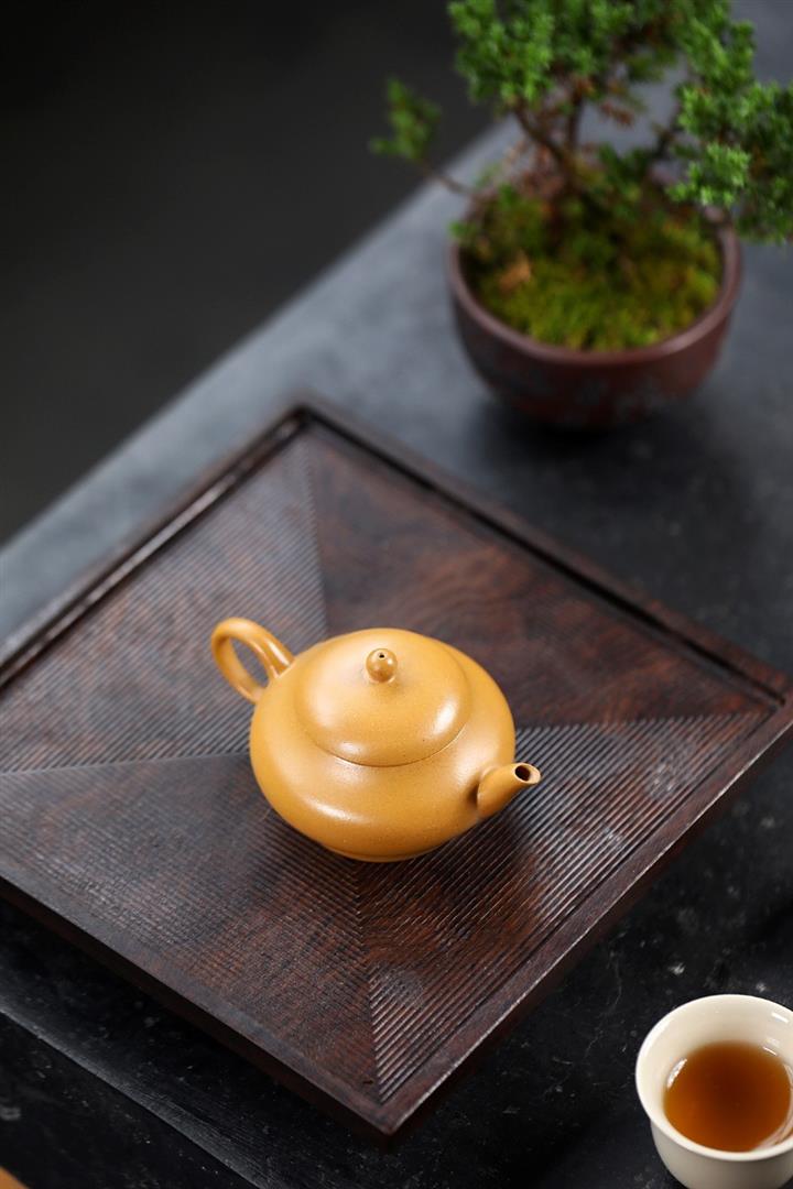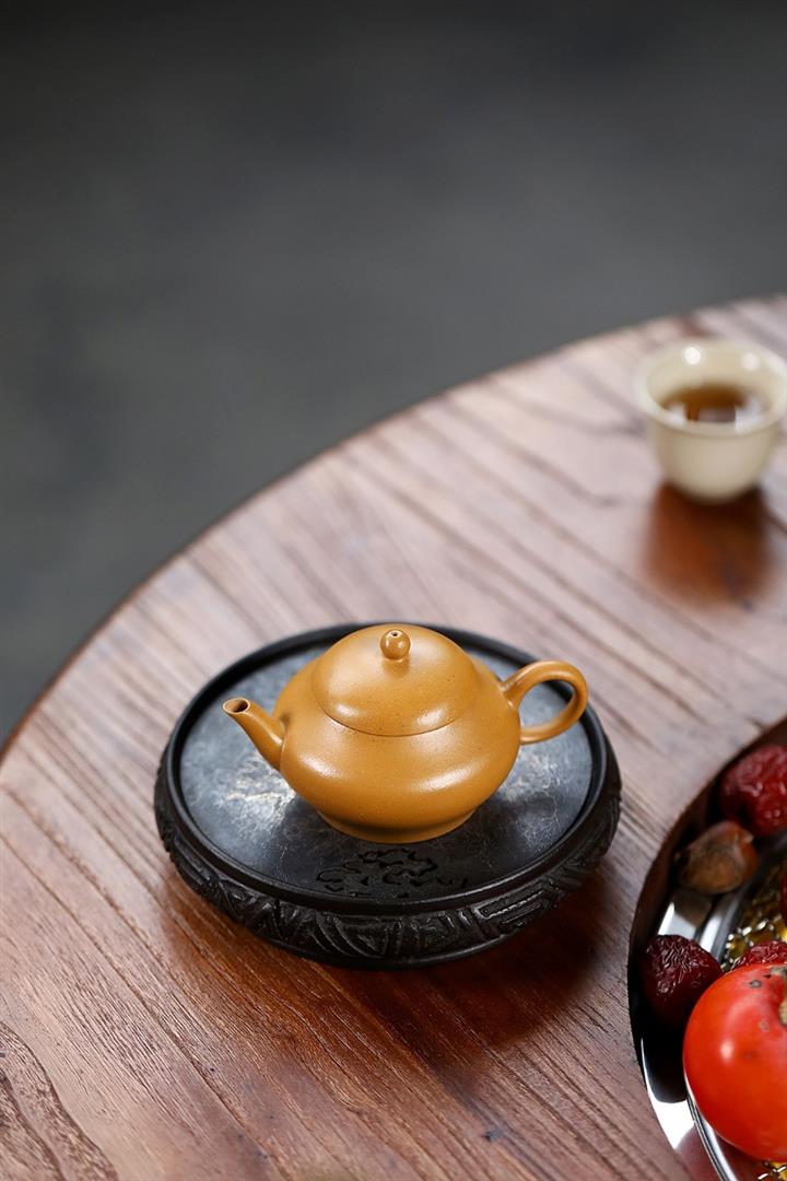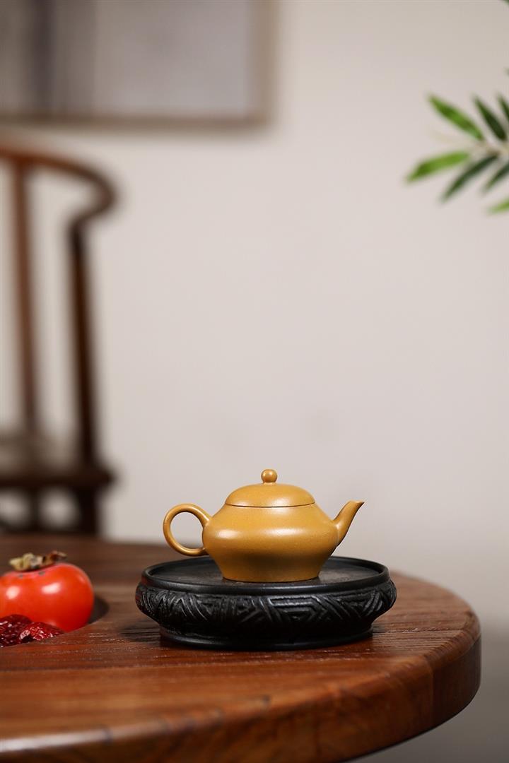 原礦黃金段泥純全手工高虛扁茶壺POT7087