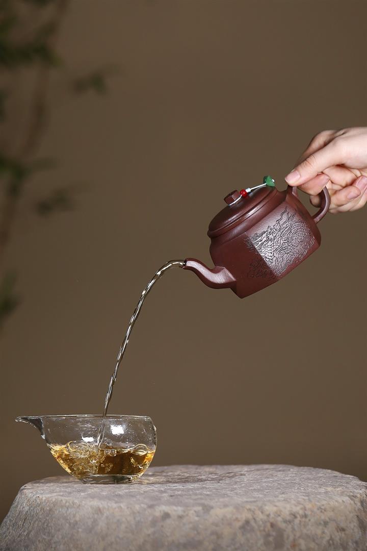 原礦大紅袍手工刻字金潘茶壺POT7120