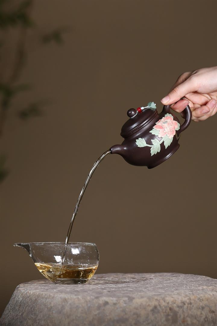 原礦石黃泥堆繪牡丹掇只茶壺POT7116