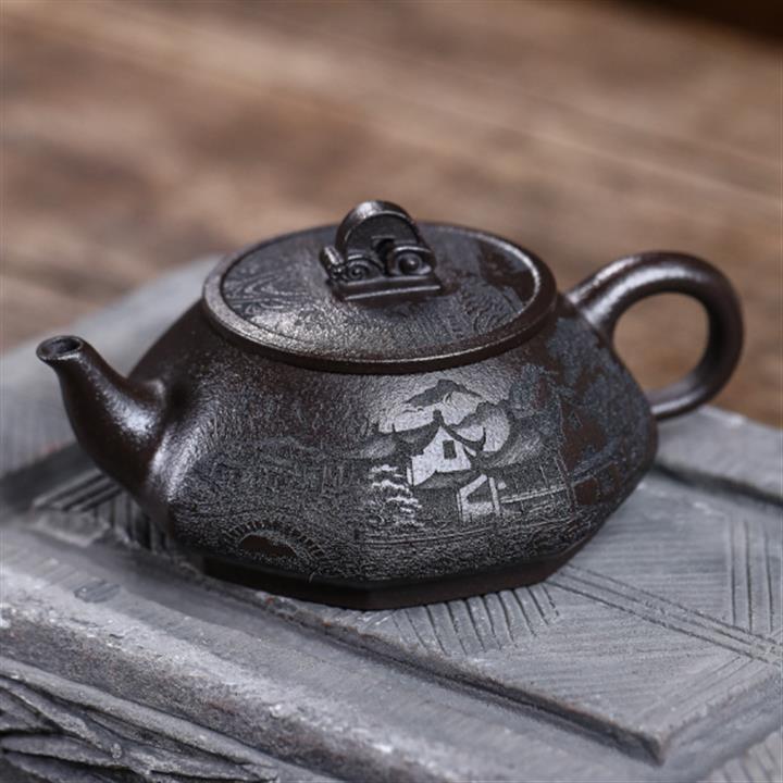 原礦大紅袍手工刻字金潘茶壺POT7120