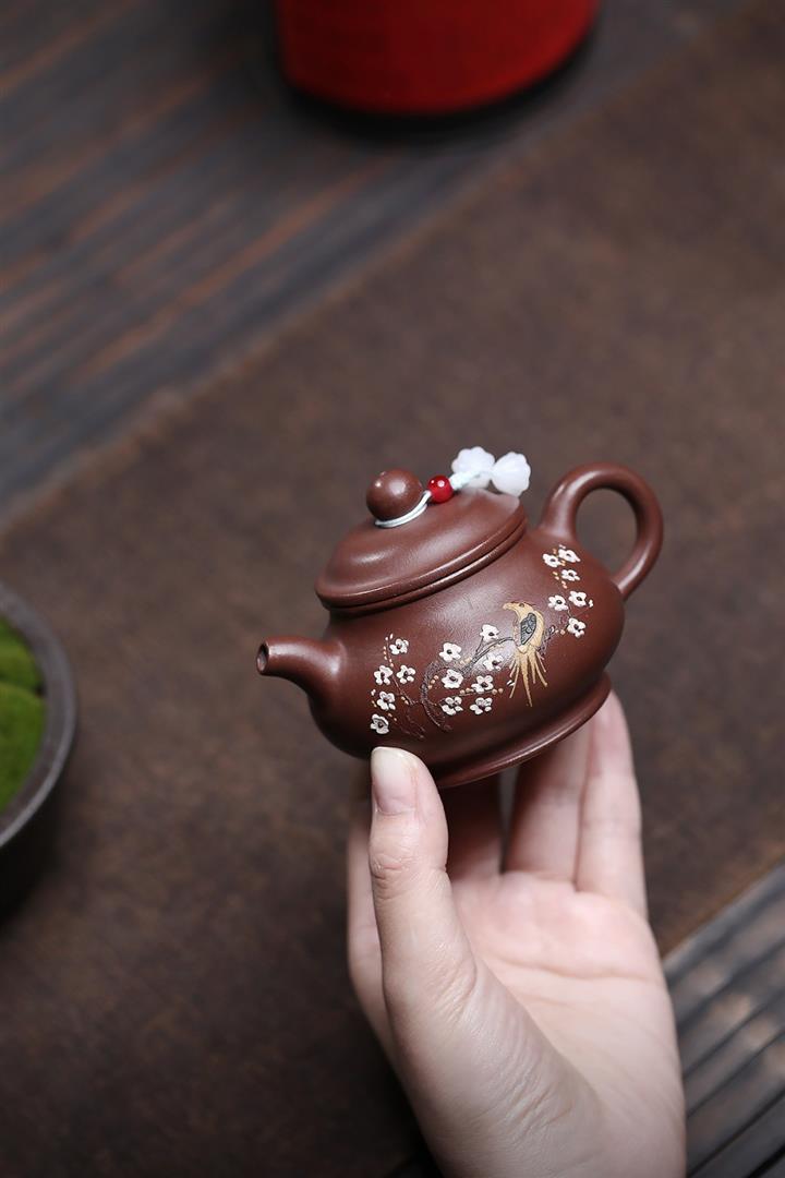 原礦大紅袍手工刻字金潘茶壺POT7120