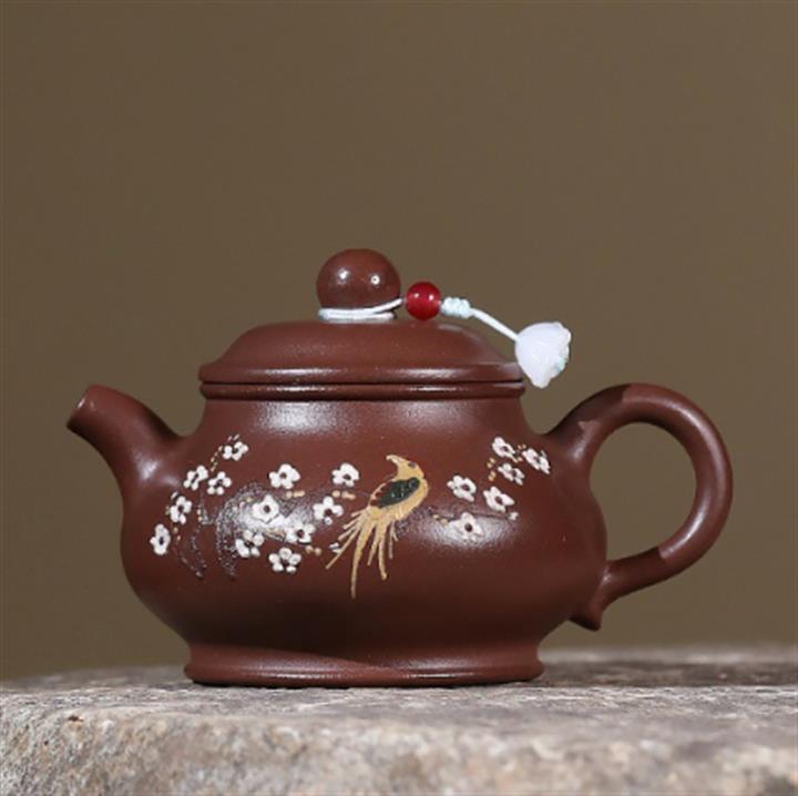 原礦紫泥手工刻畫鳳凰涅槃茶壺POT7128