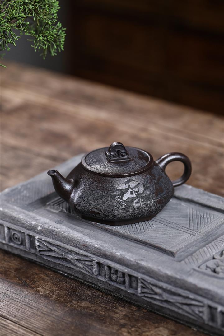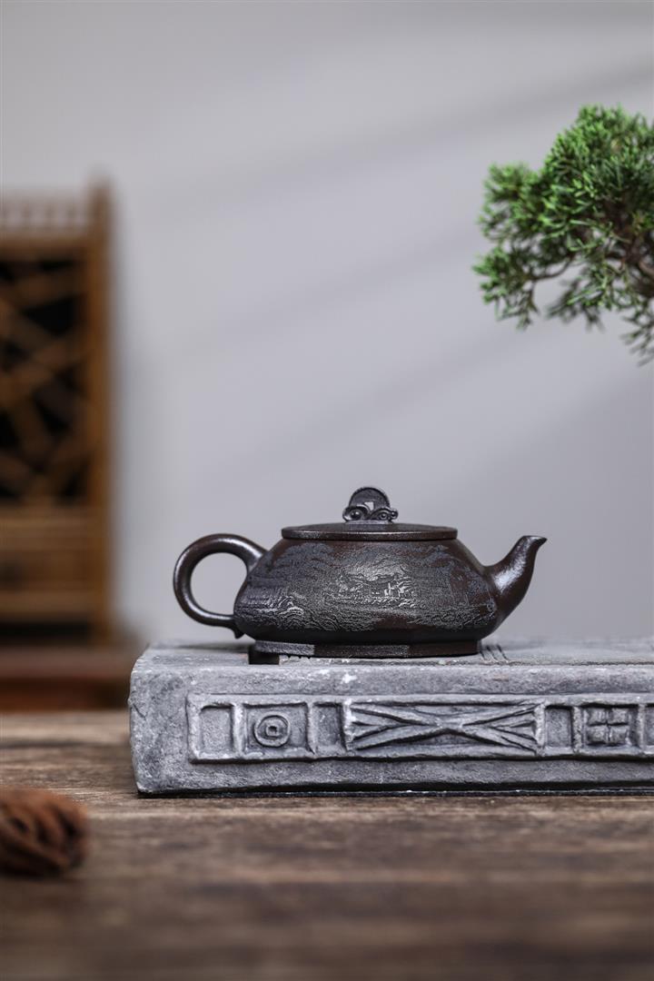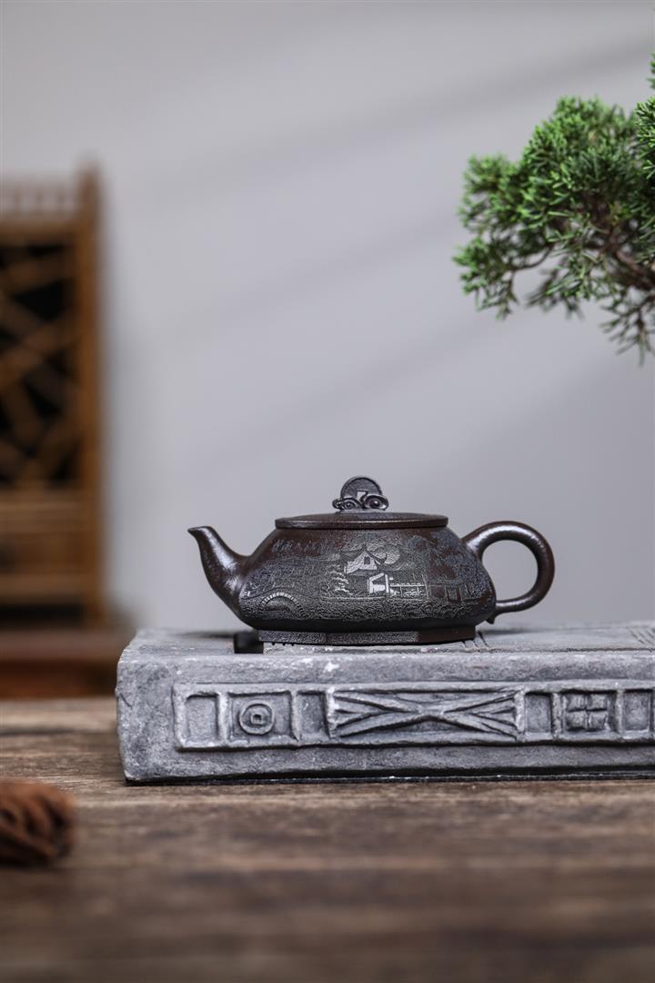 原礦紫泥手工刻畫鳳凰涅槃茶壺POT7128