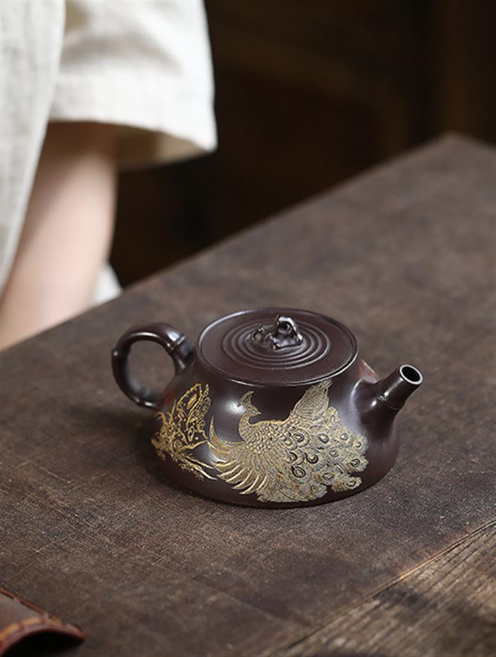 原礦紫泥手工刻畫鳳凰涅槃茶壺POT7128