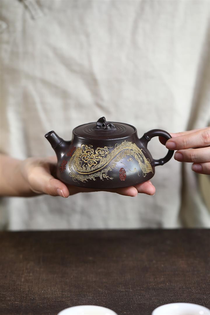 原礦紅皮龍孔雀頌金茶壺POT7137